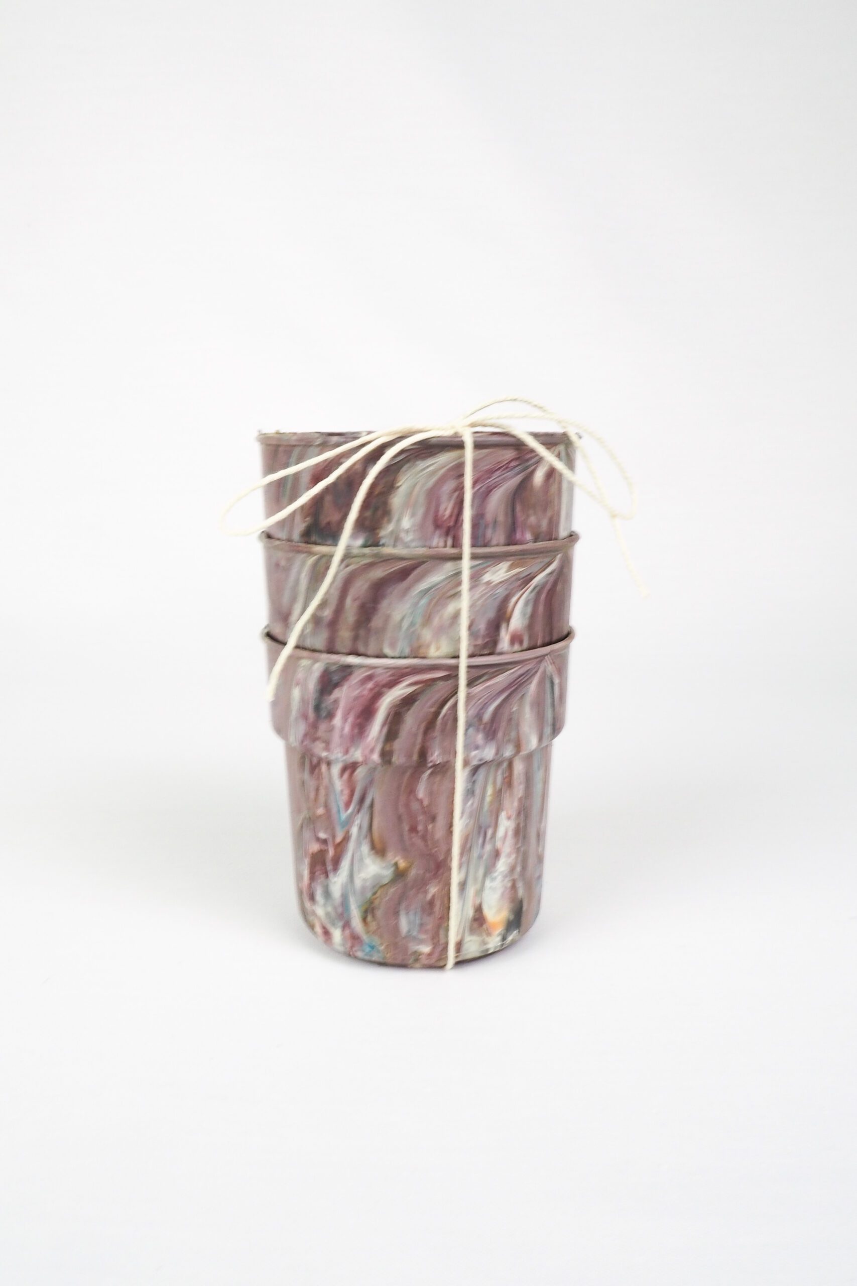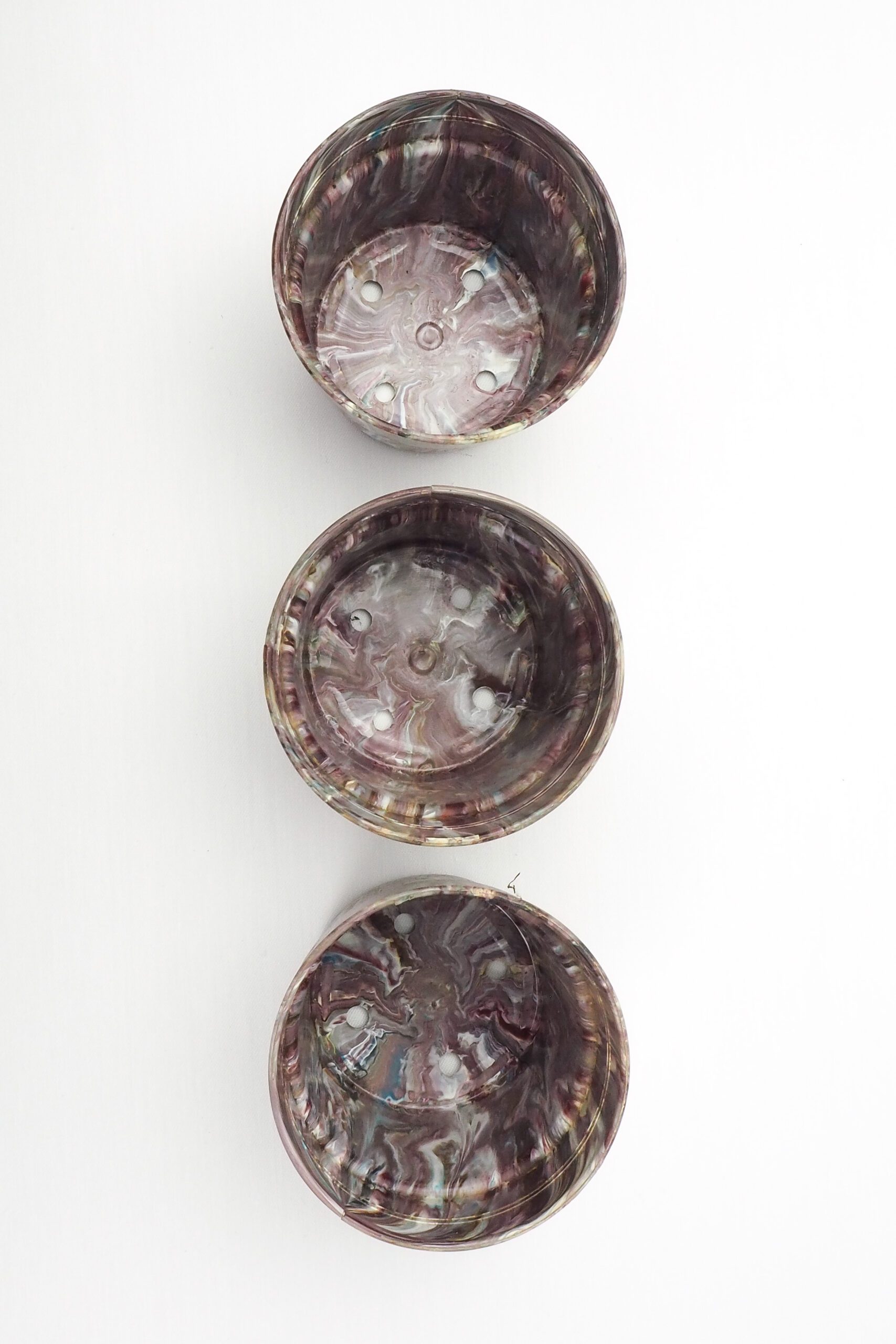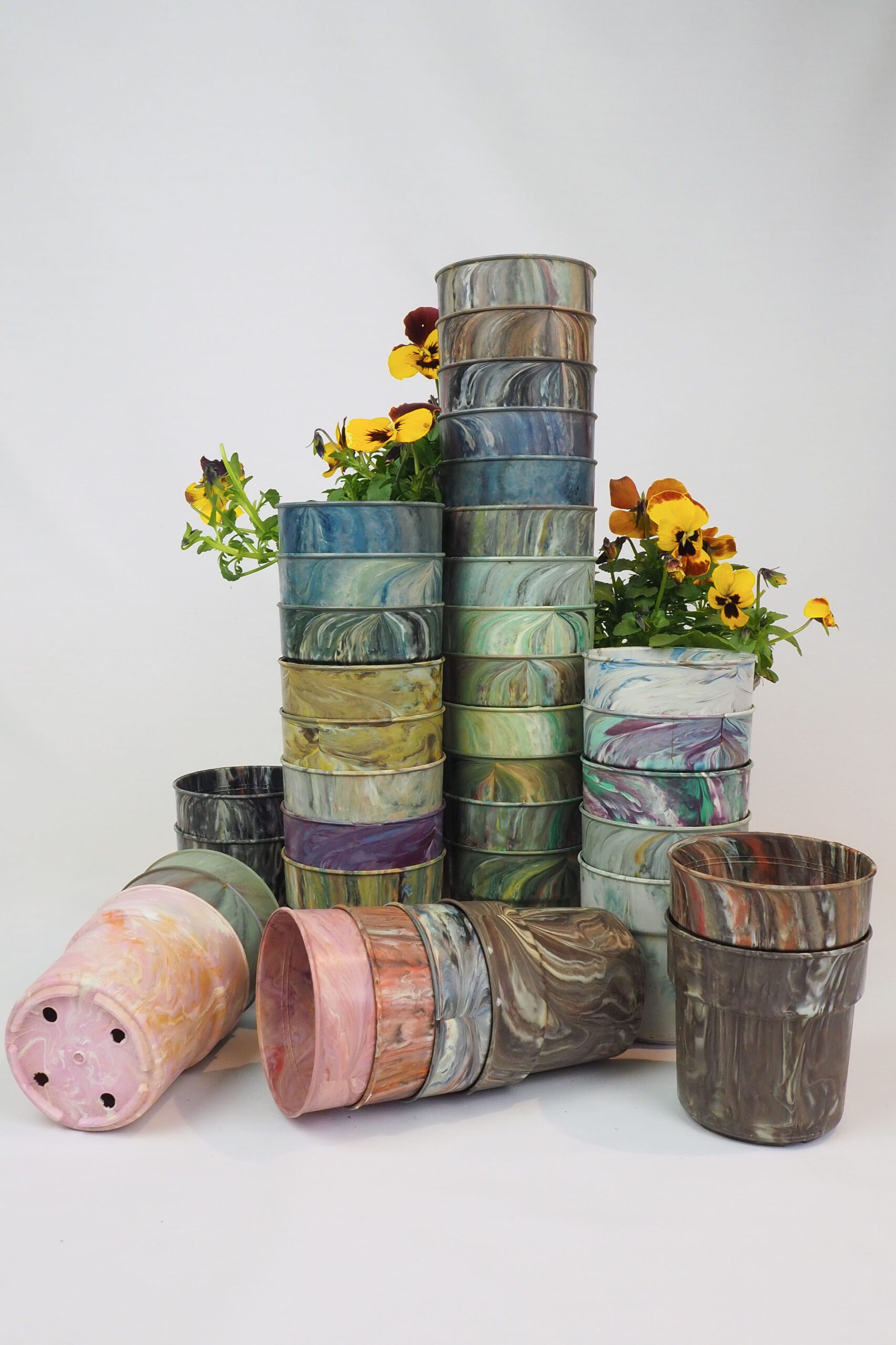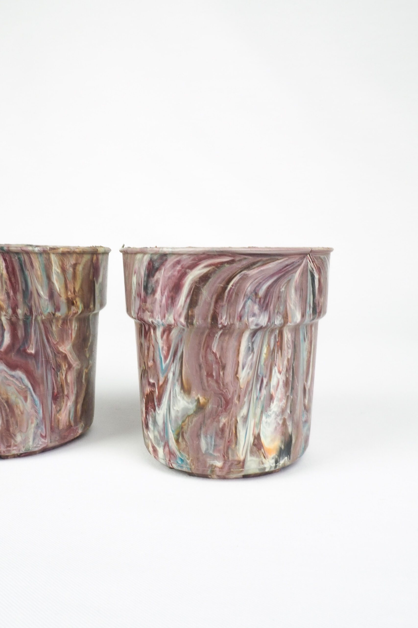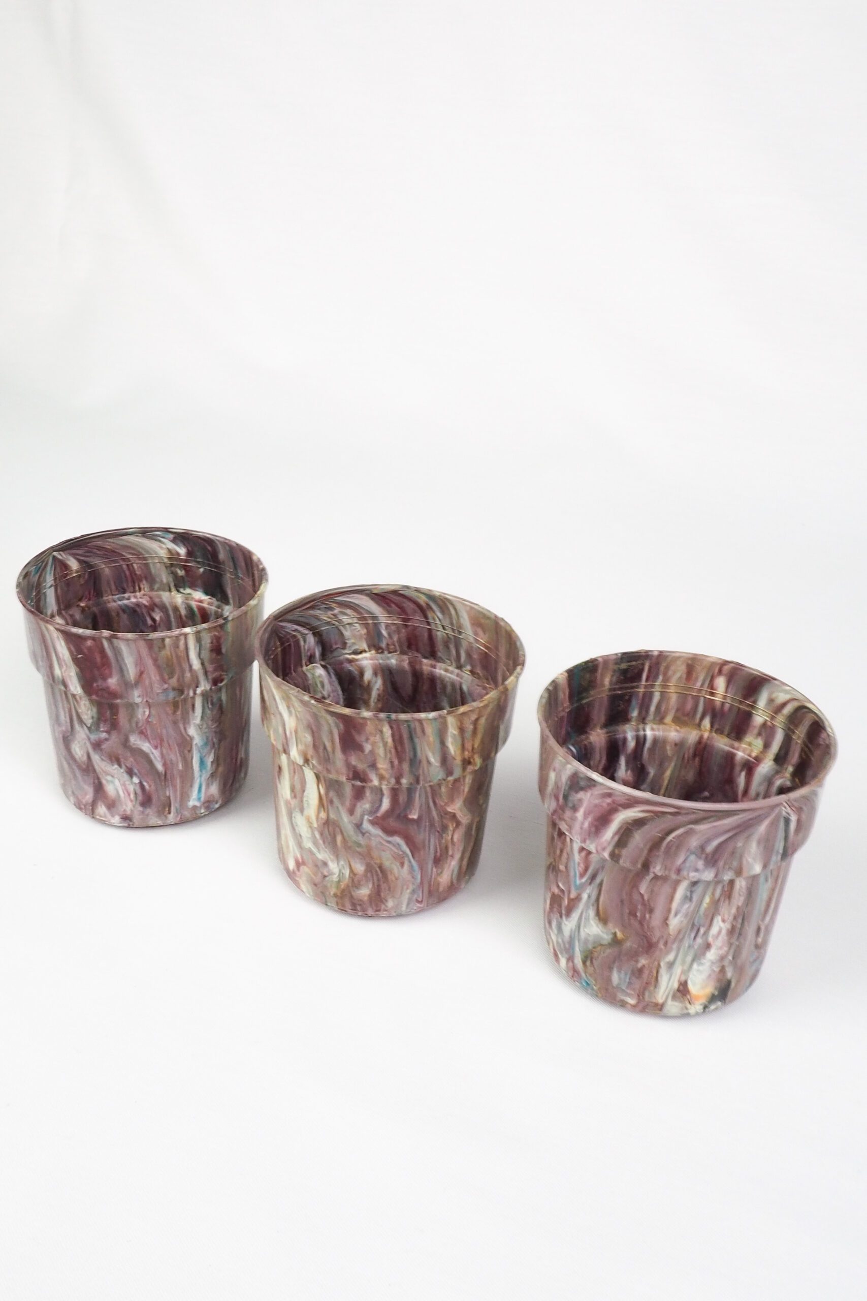 Each plant pot was individually created from scraps of plastic in the late 20th century. Sourced exclusively for Wildmore, this collection of three marbled planters are completely unique. An ideal piece of artwork to house your stunning plants.
