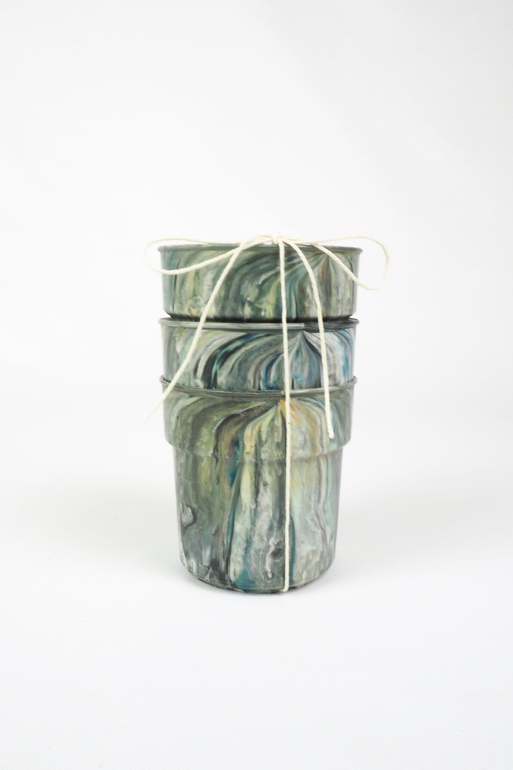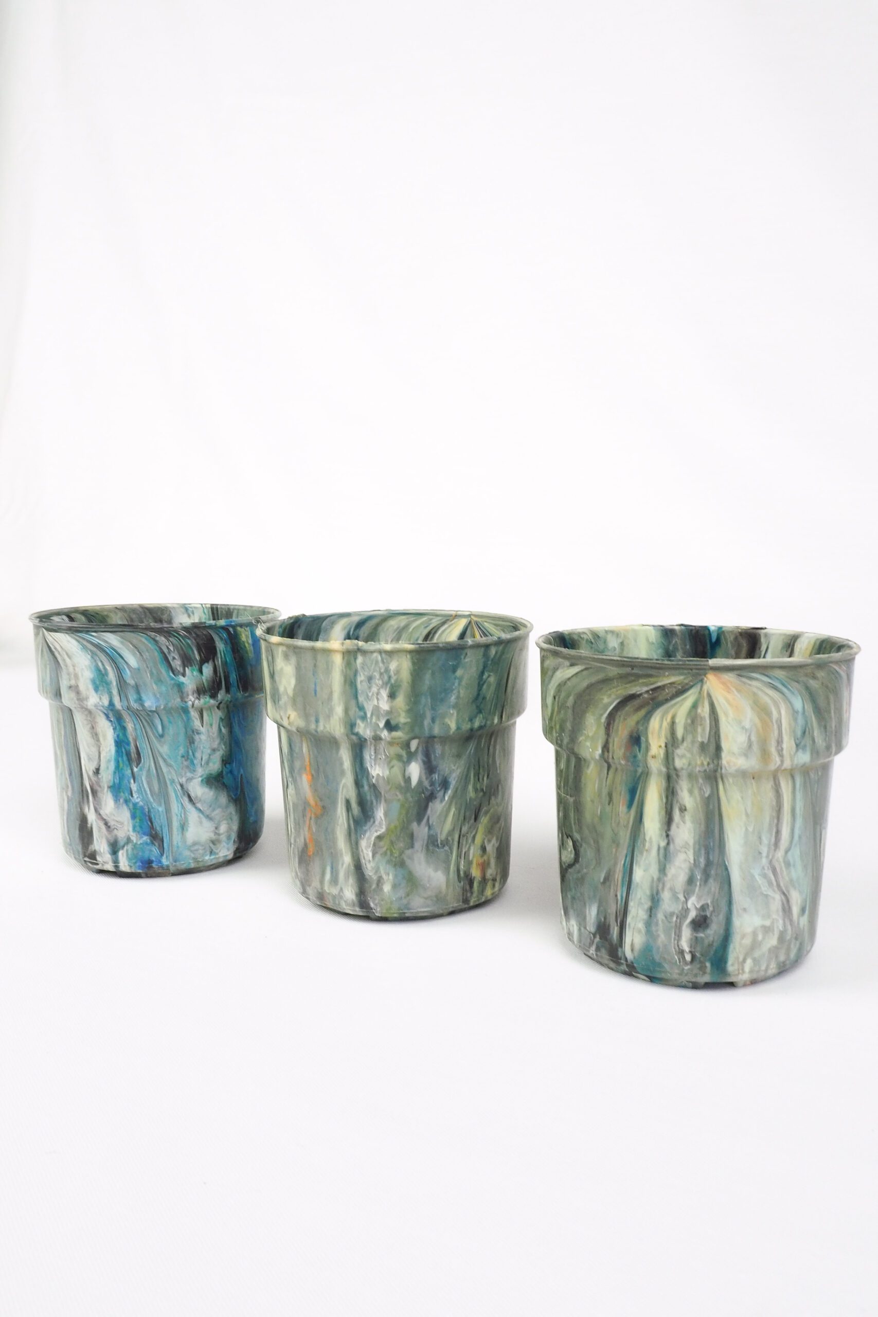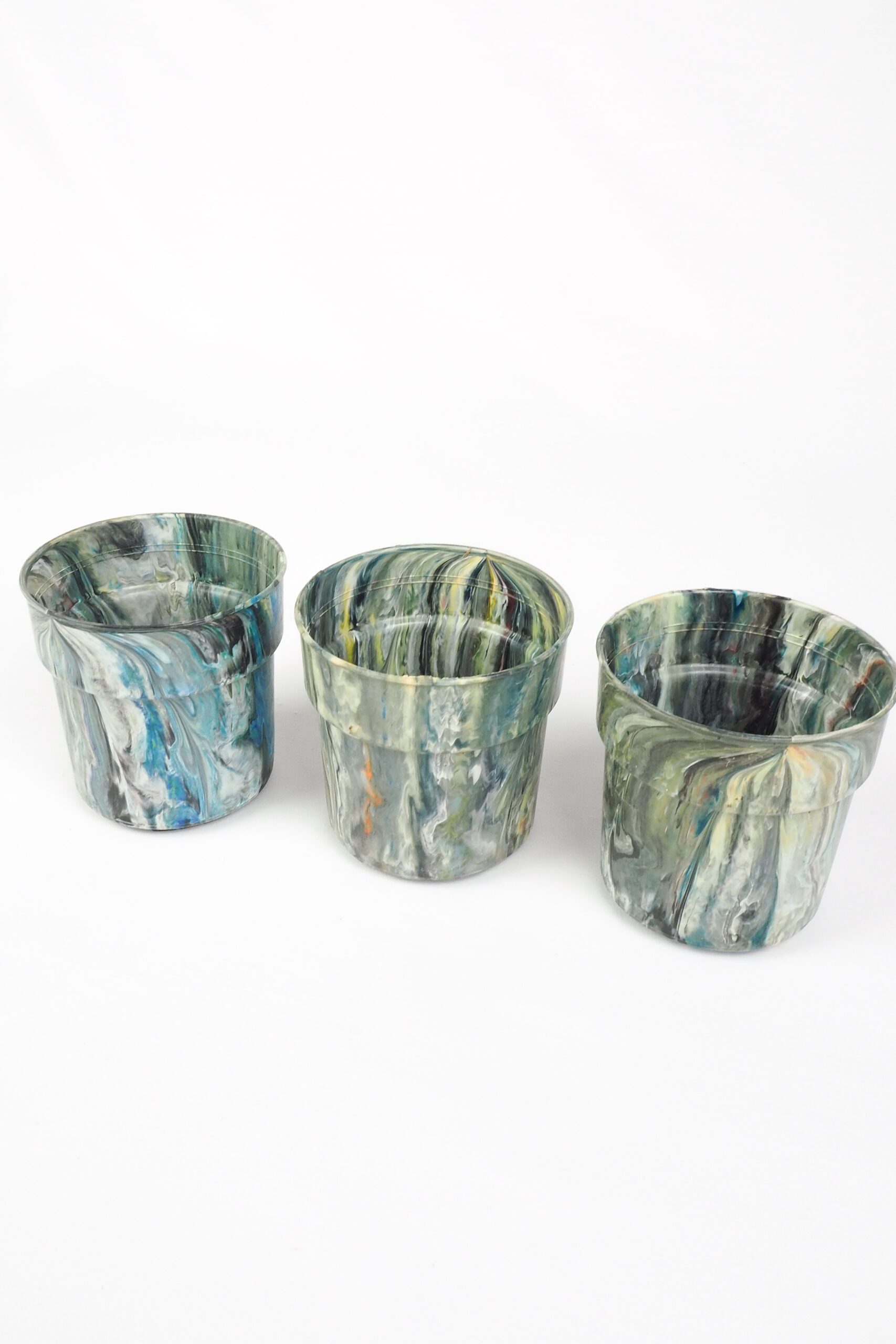 Each plant pot was individually created from scraps of plastic in the late 20th century. Sourced exclusively for Wildmore, this collection of three marbled planters are completely unique. An ideal piece of artwork to house your stunning plants.