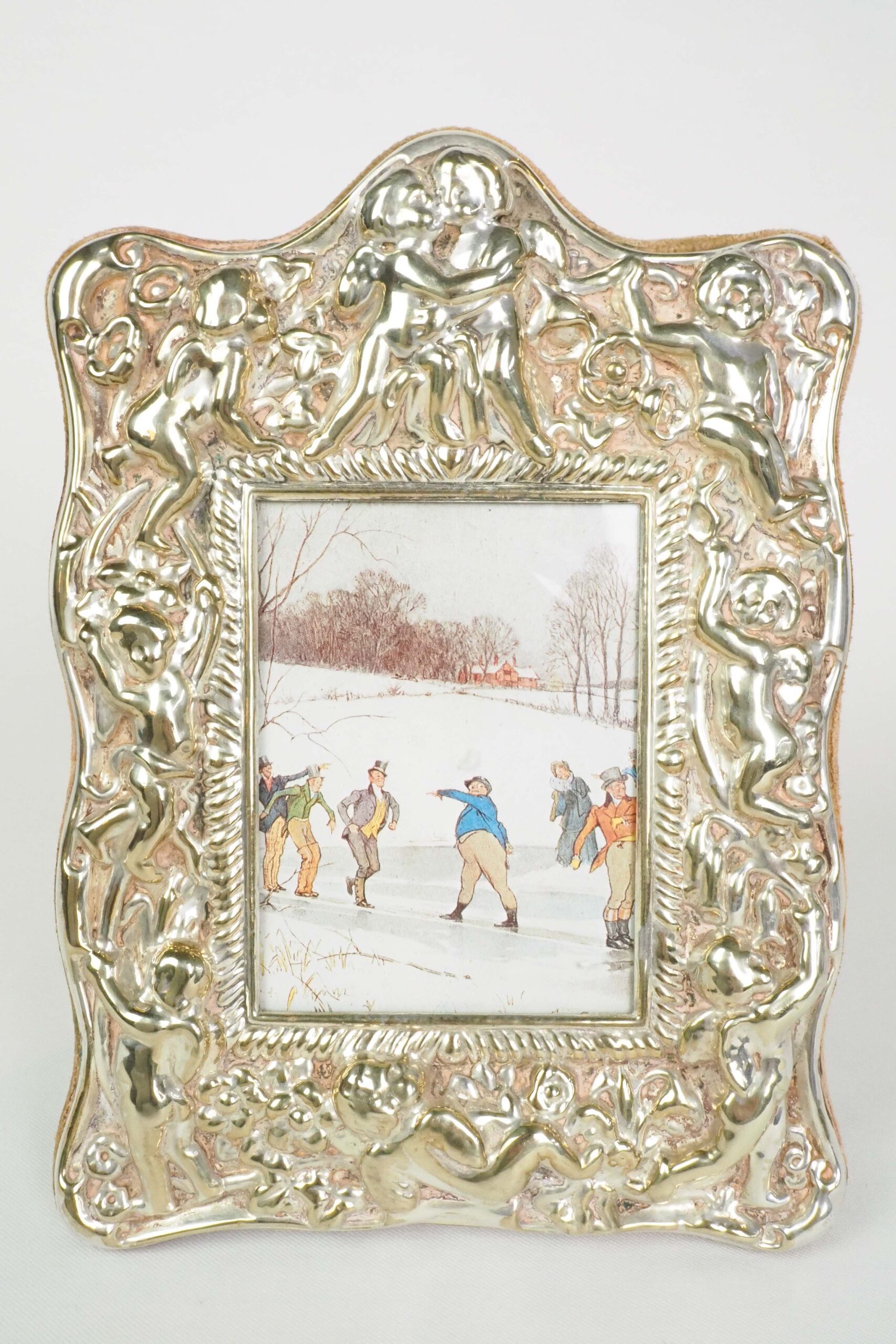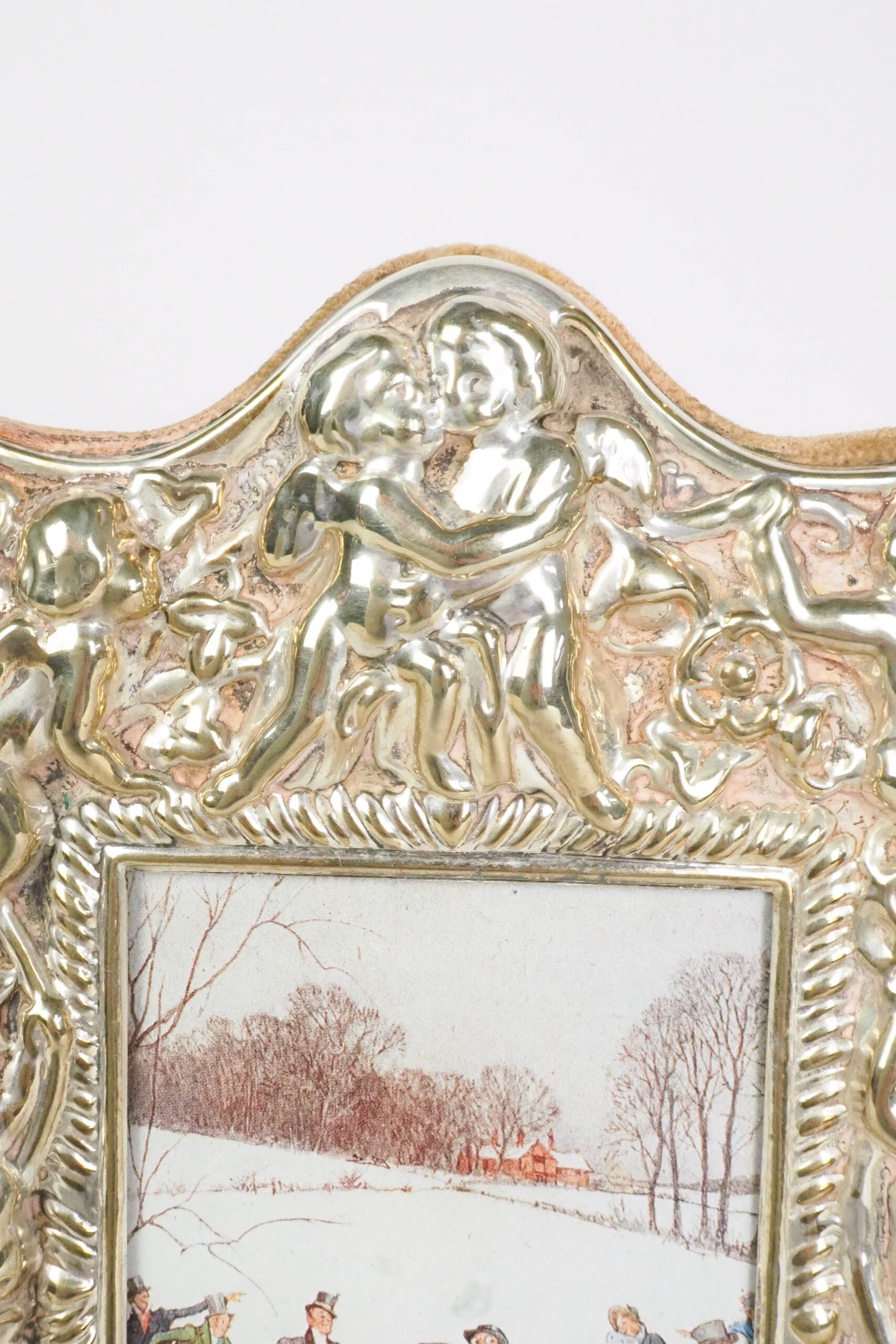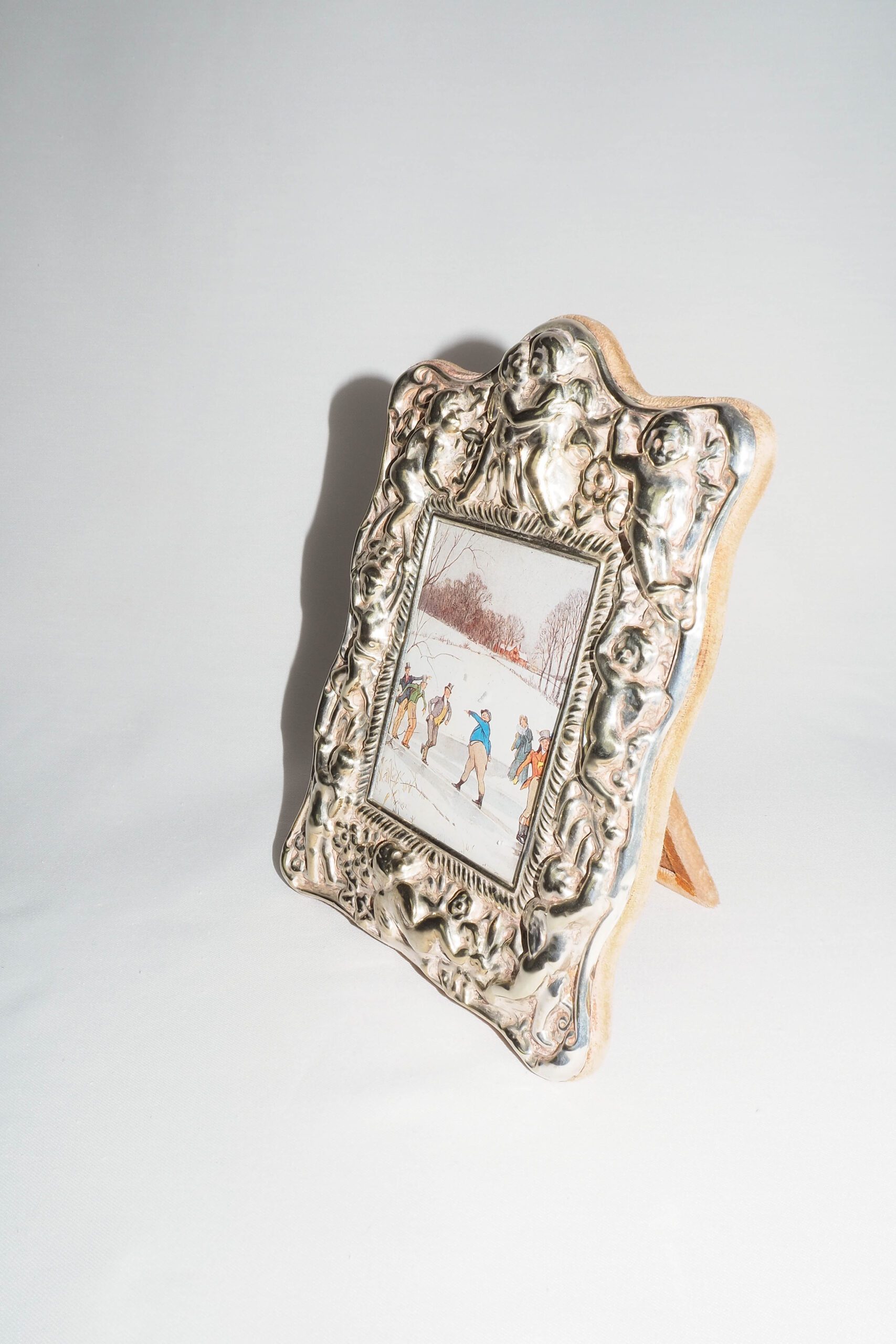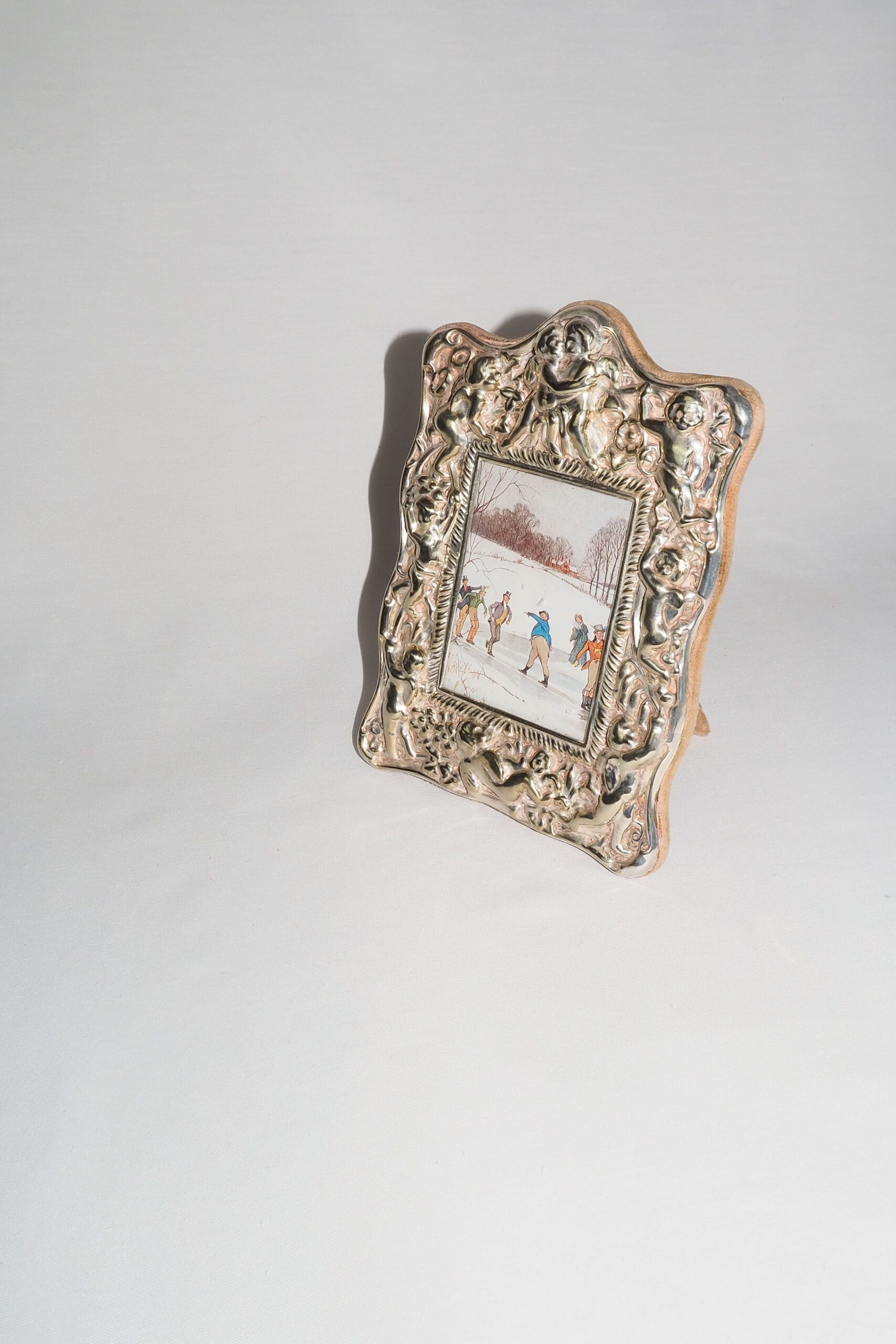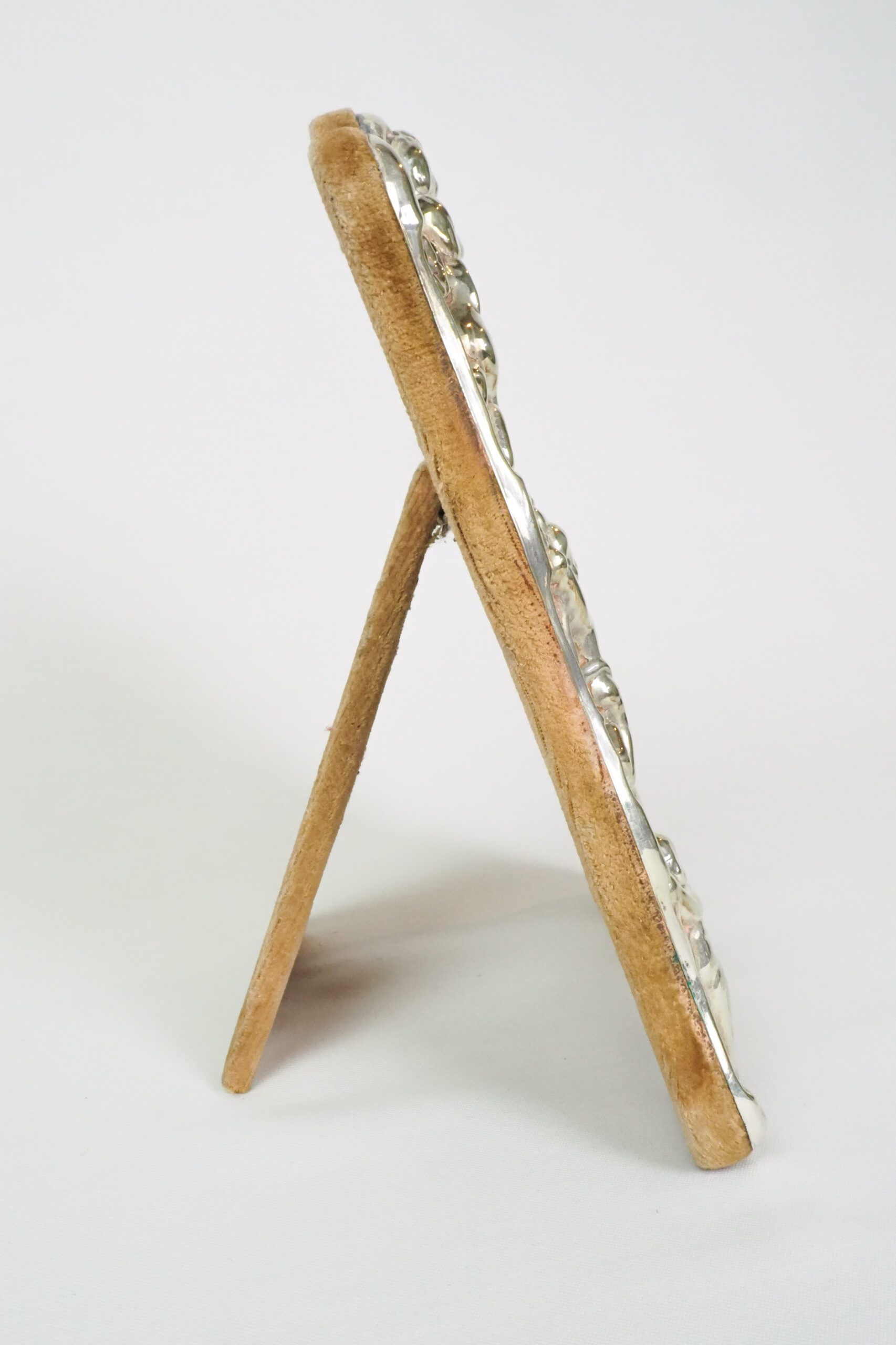 This antique silver plate frame is perfect for a photo of your loved ones. Line with grey silk moire, this petite frame is a stunning addition for your bedside table, hallway or mantlepiece.