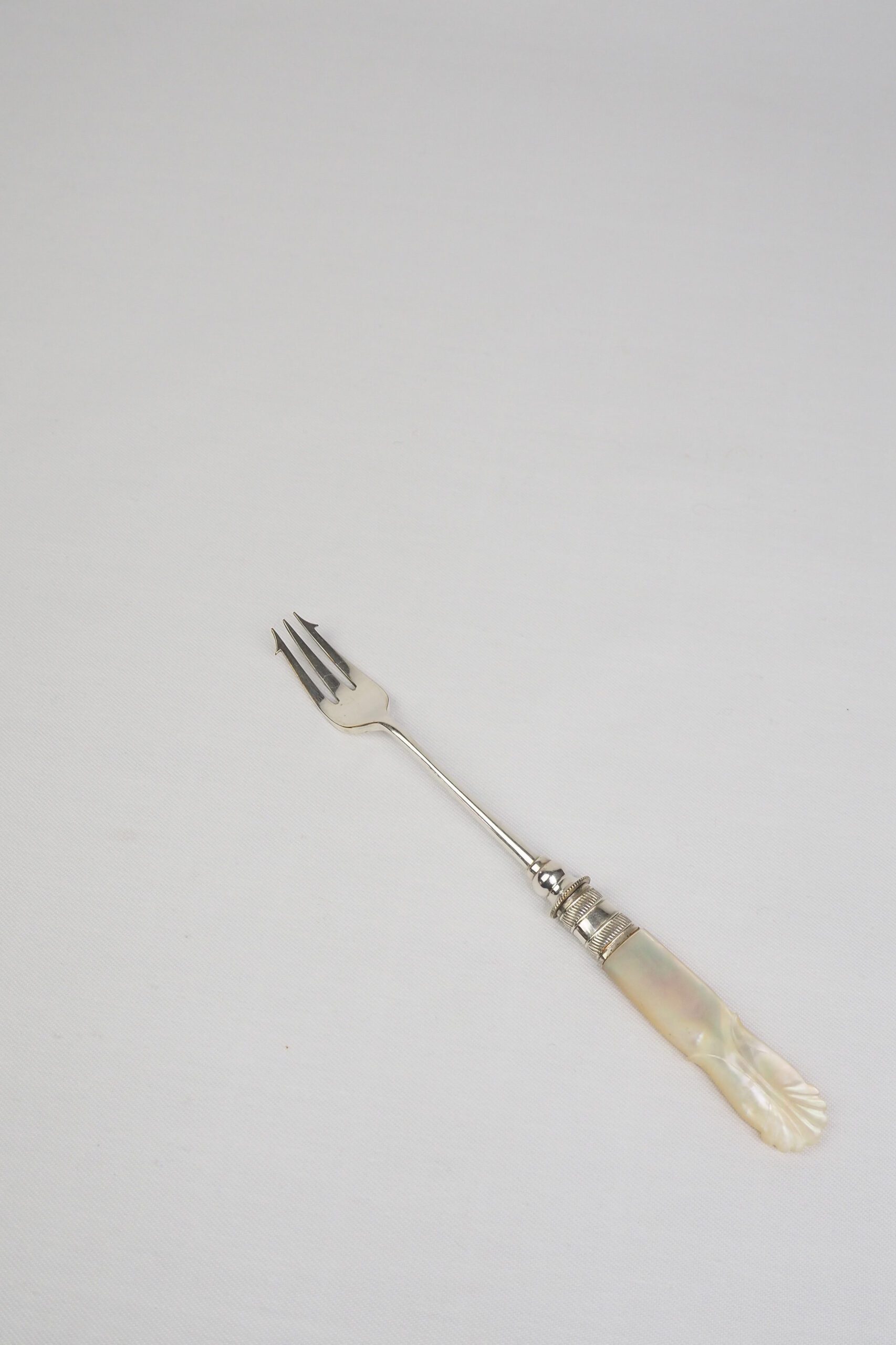 Our wonderful vintage and antique cutlery is sourced exclusively for Wildmore, bringing a unique selection of curated flatware to the table. Each characterful vintage piece of cutlery has been preloved so please expect some tarnishing. It all adds to the wonderful character of this Silver Plated and Mother of Pearl Antique Pickle Fork.