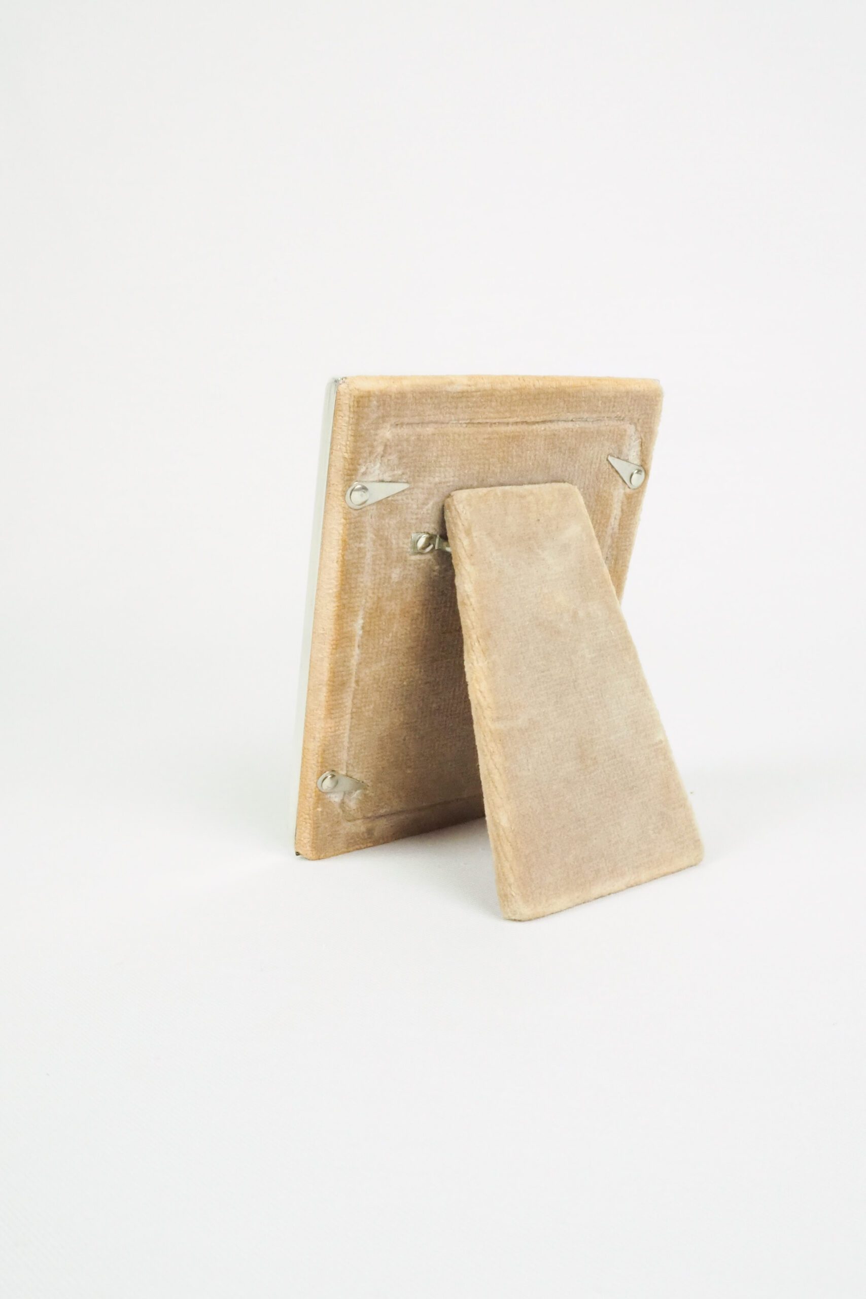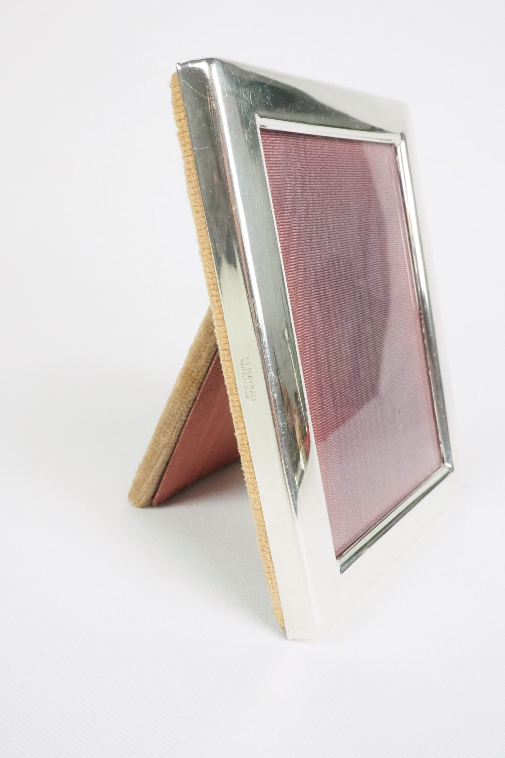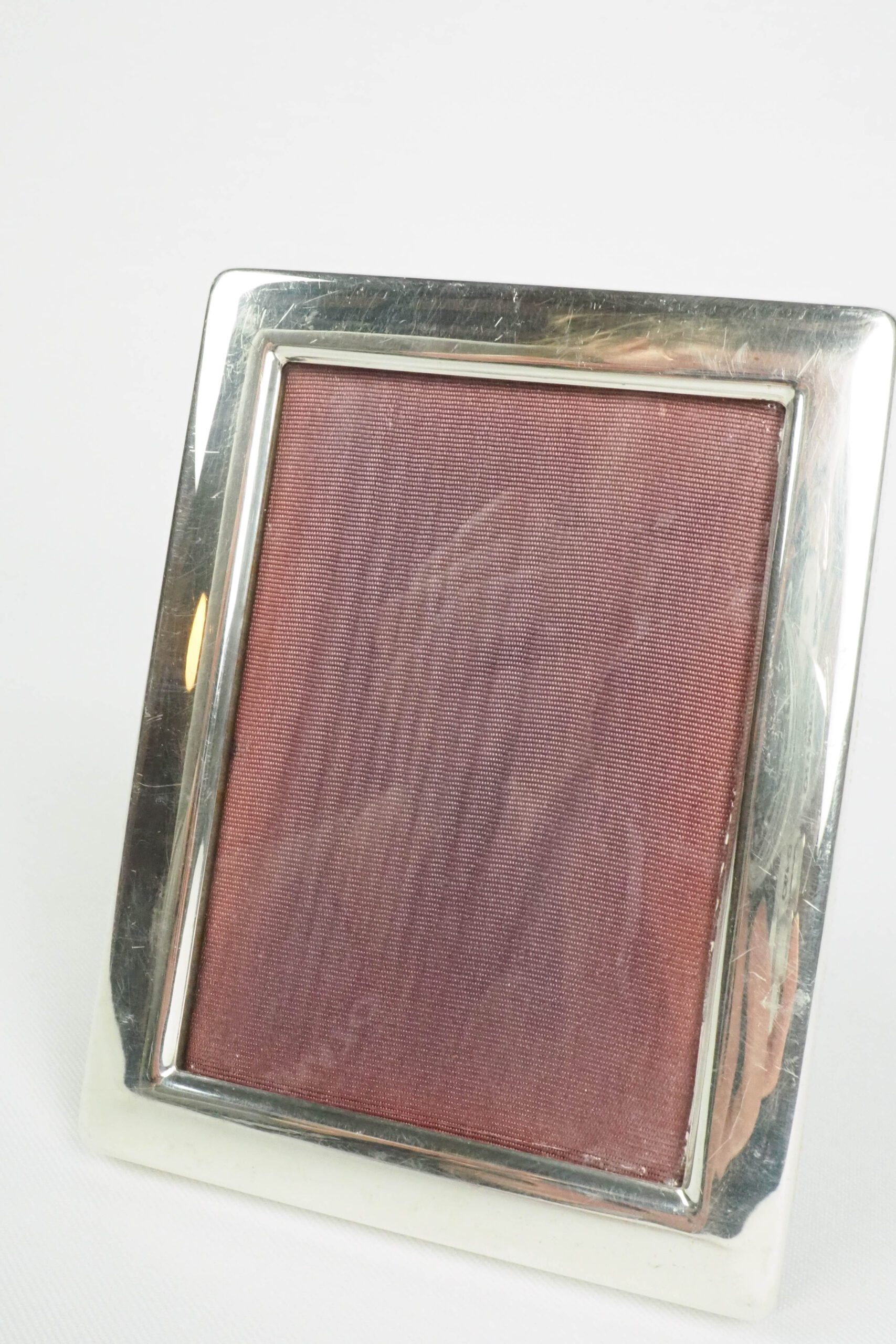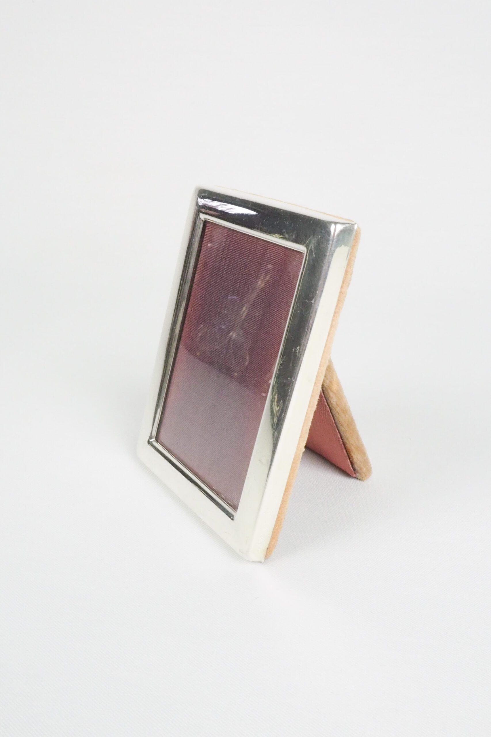 This antique silver plate frame is perfect for a little photo of your loved ones. Lined with a purple silk moire, this petite frame is a stunning addition for your bedside table, hallway or mantlepiece.
