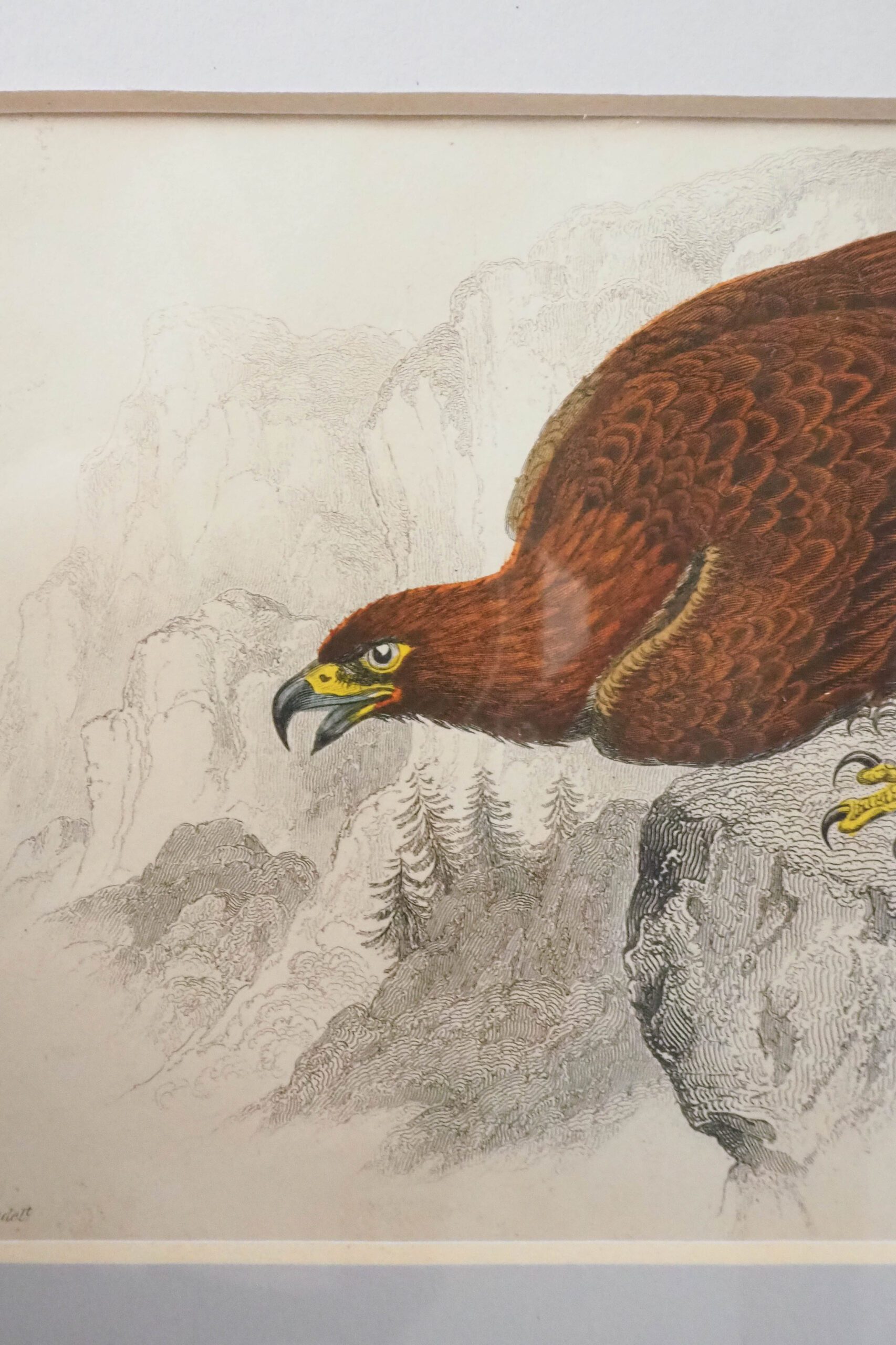 Original hand coloured Framed Antique Eagle Print. Circa mid 1800s.