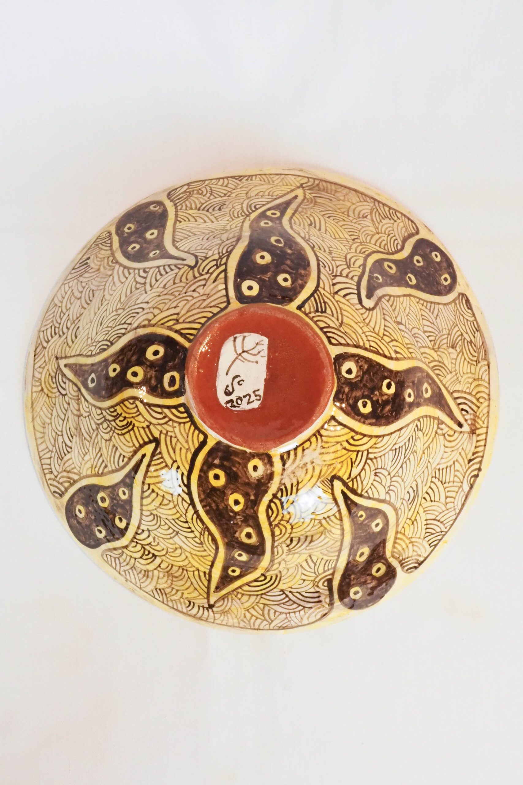 Part of our new collaboration with potter Shaun Clark, this Medium Octopus Serving Dish features a charming sea creature and an intricately hand painted pattern. This exquisite Bowl by Shaun Clark has been exclusively hand thrown and decorated for Wildmore. Shaun hand crafts each piece in his Nottinghamshire garden studio. He intricately decorates each piece with slip on both the top and bottom, creating an exceptional piece of pottery that can be treasured and enjoyed for generations.