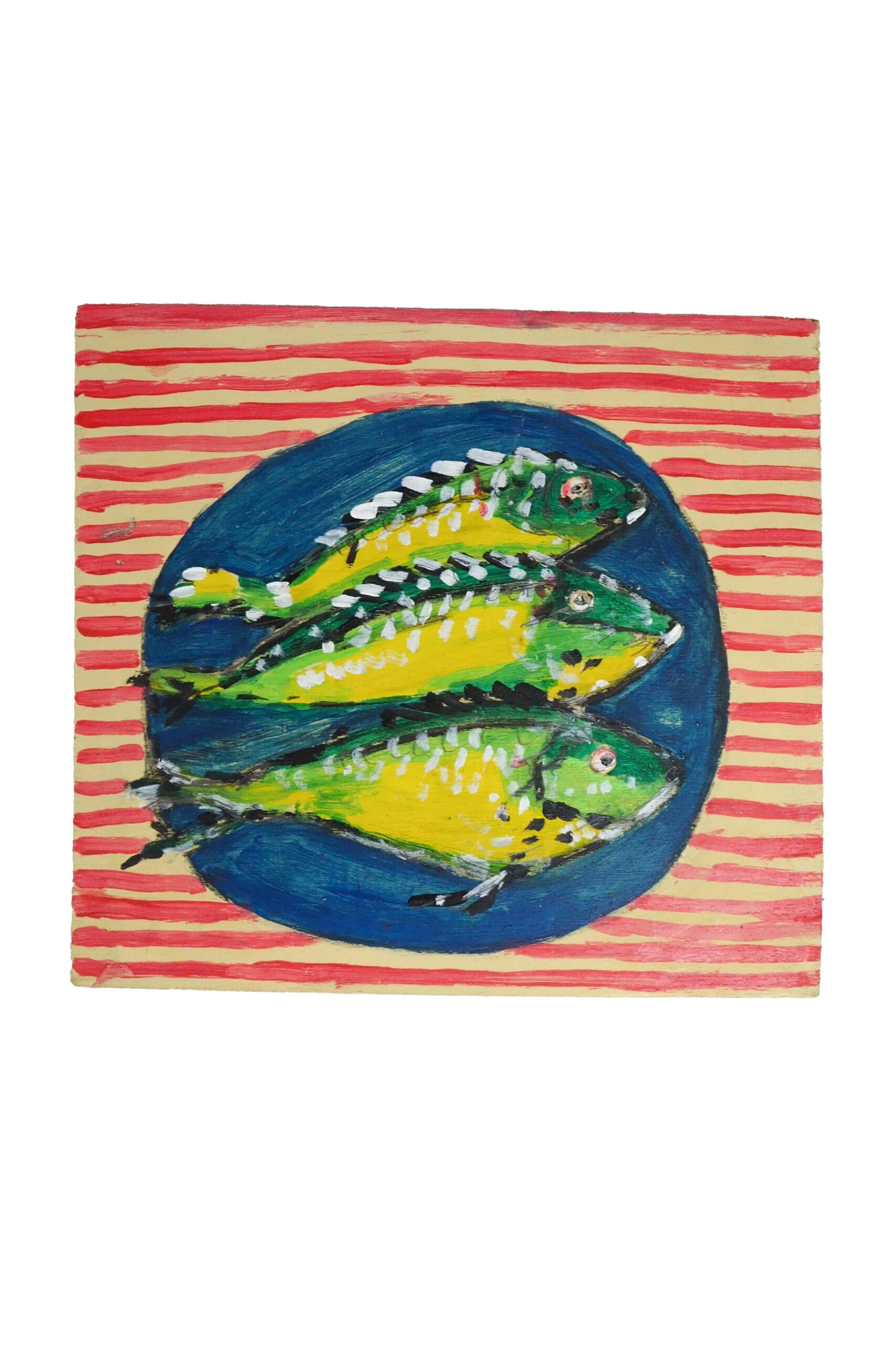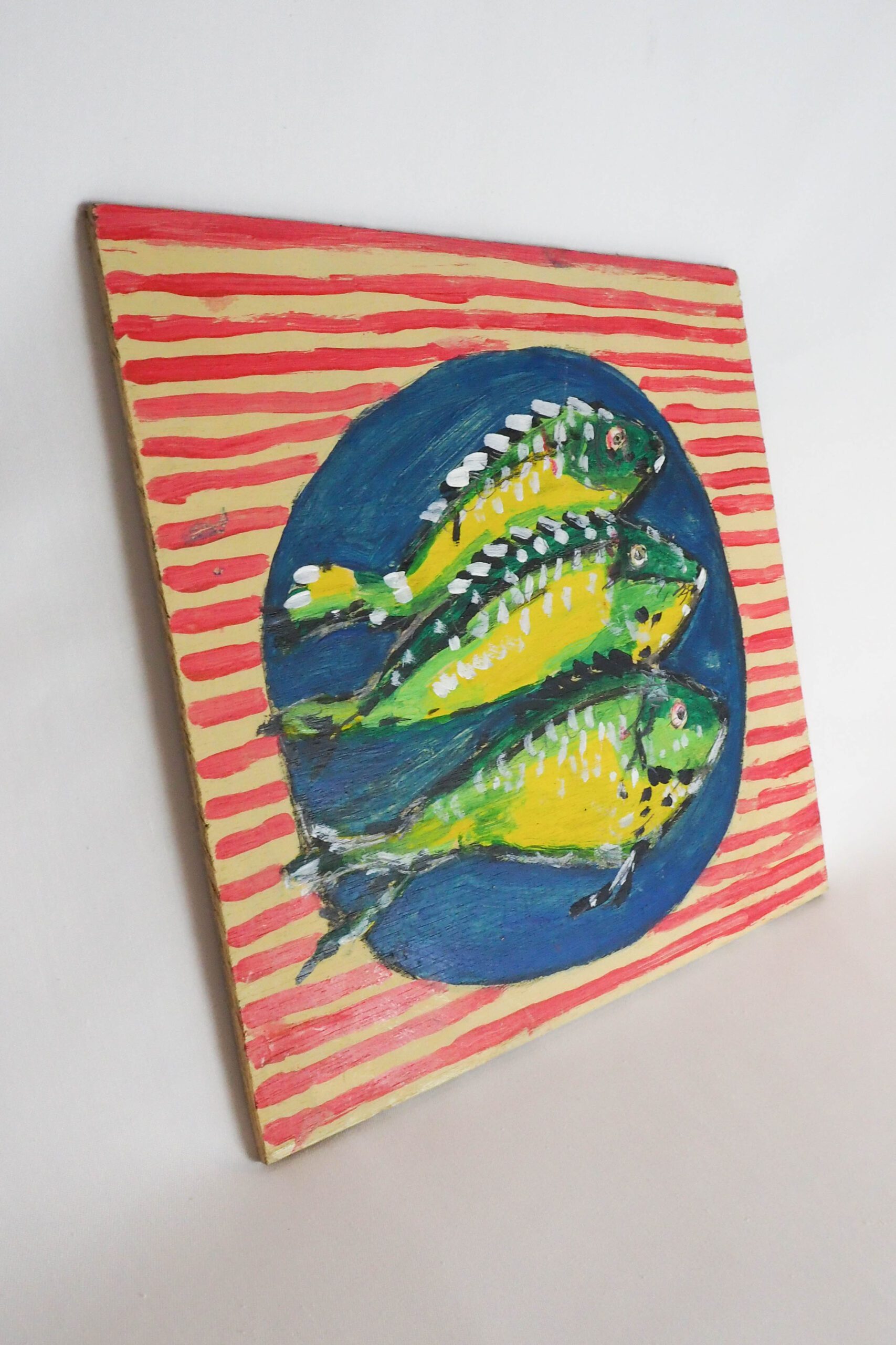 Oil on wooden board. This Oil on Board Fish Painting is unsigned.