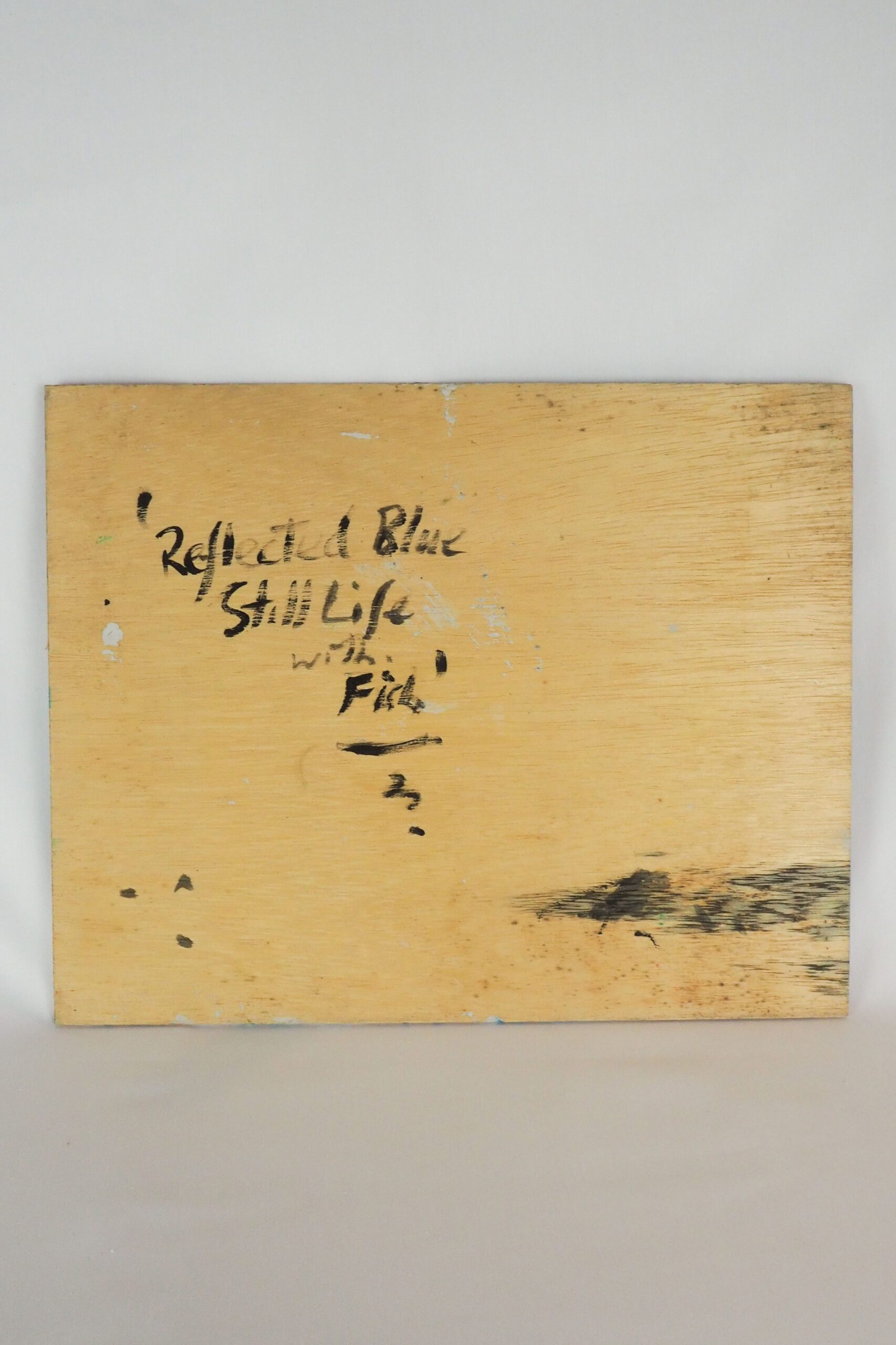 Oil on wooden board. This original Oil on Board Still Life Painting is unsigned. Written on the back: “Reflected Blue Still Life with Fish”