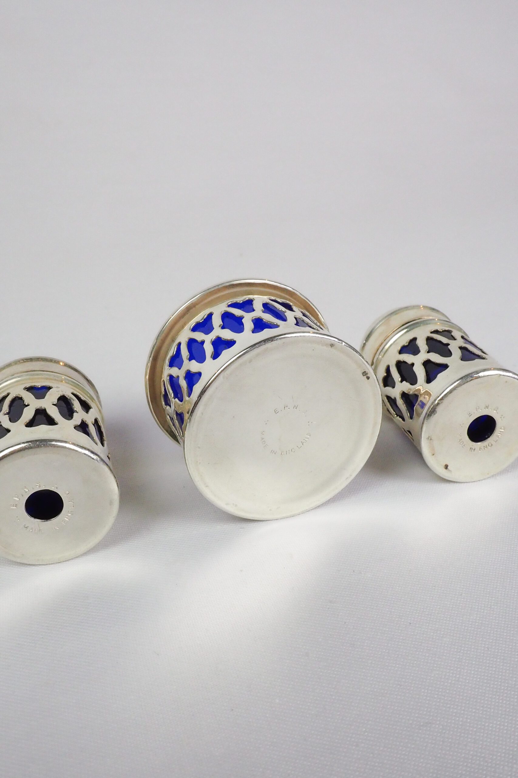 Material: Silver Plate and Dark Blue Glass