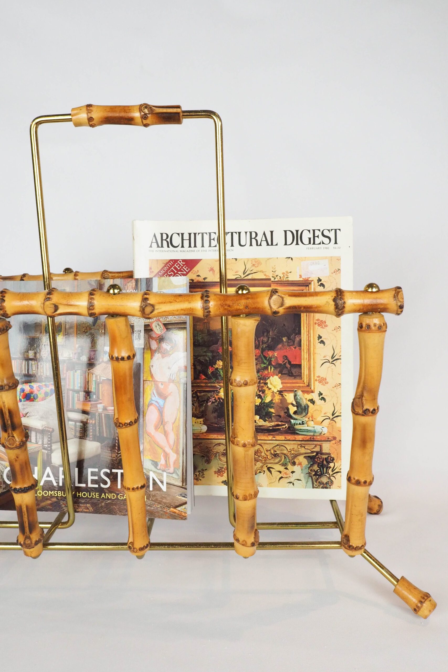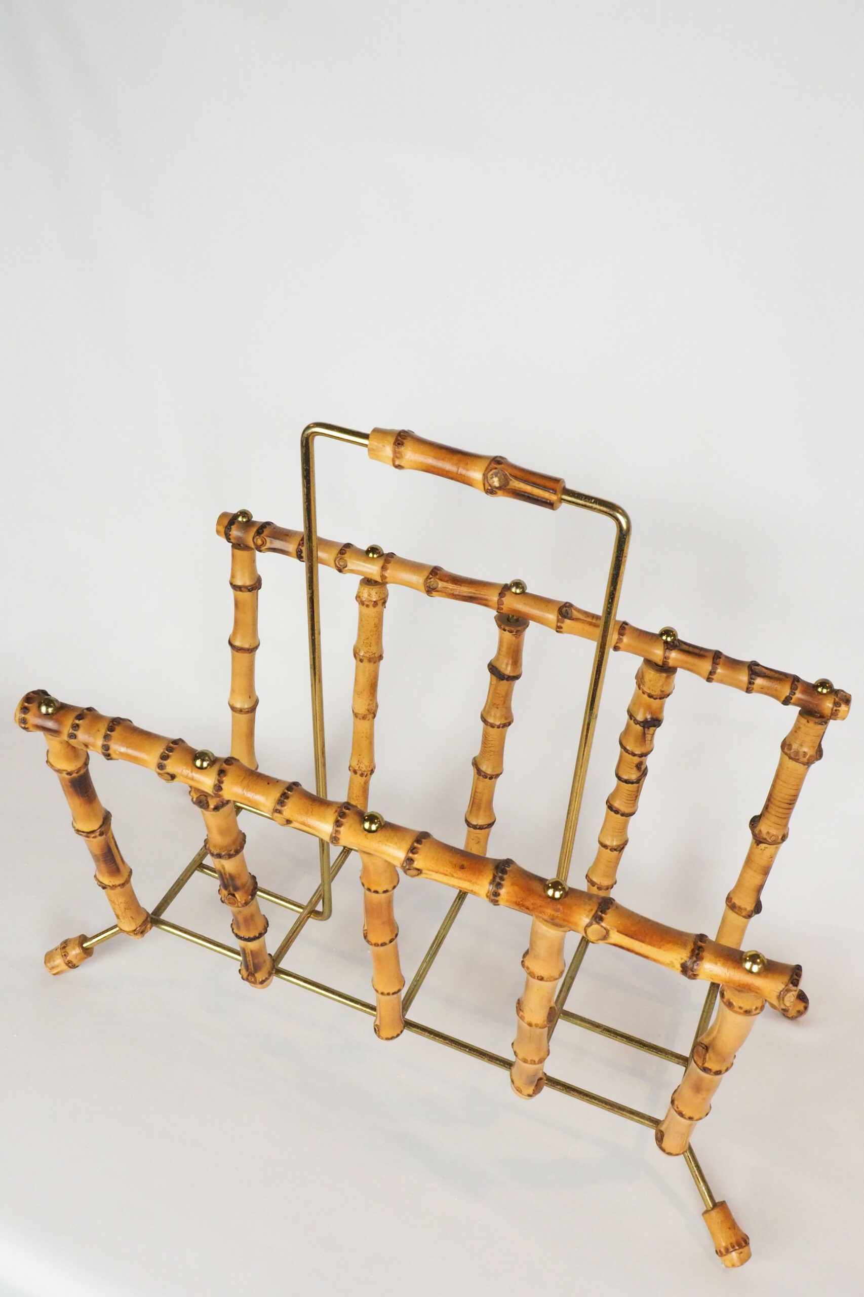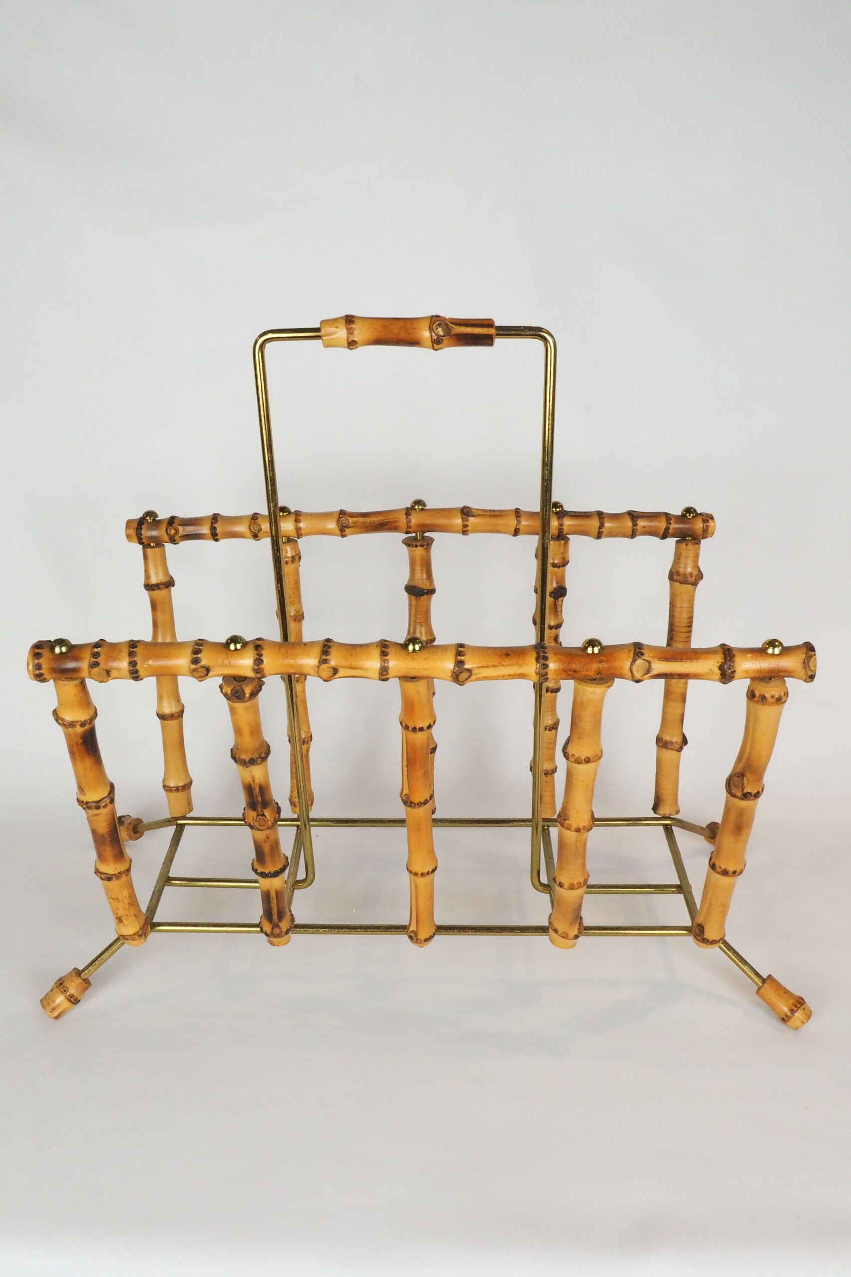 An stylish French vintage bamboo magazine rack. This mid century piece looks great full of iconic publications and your favourite reads.
