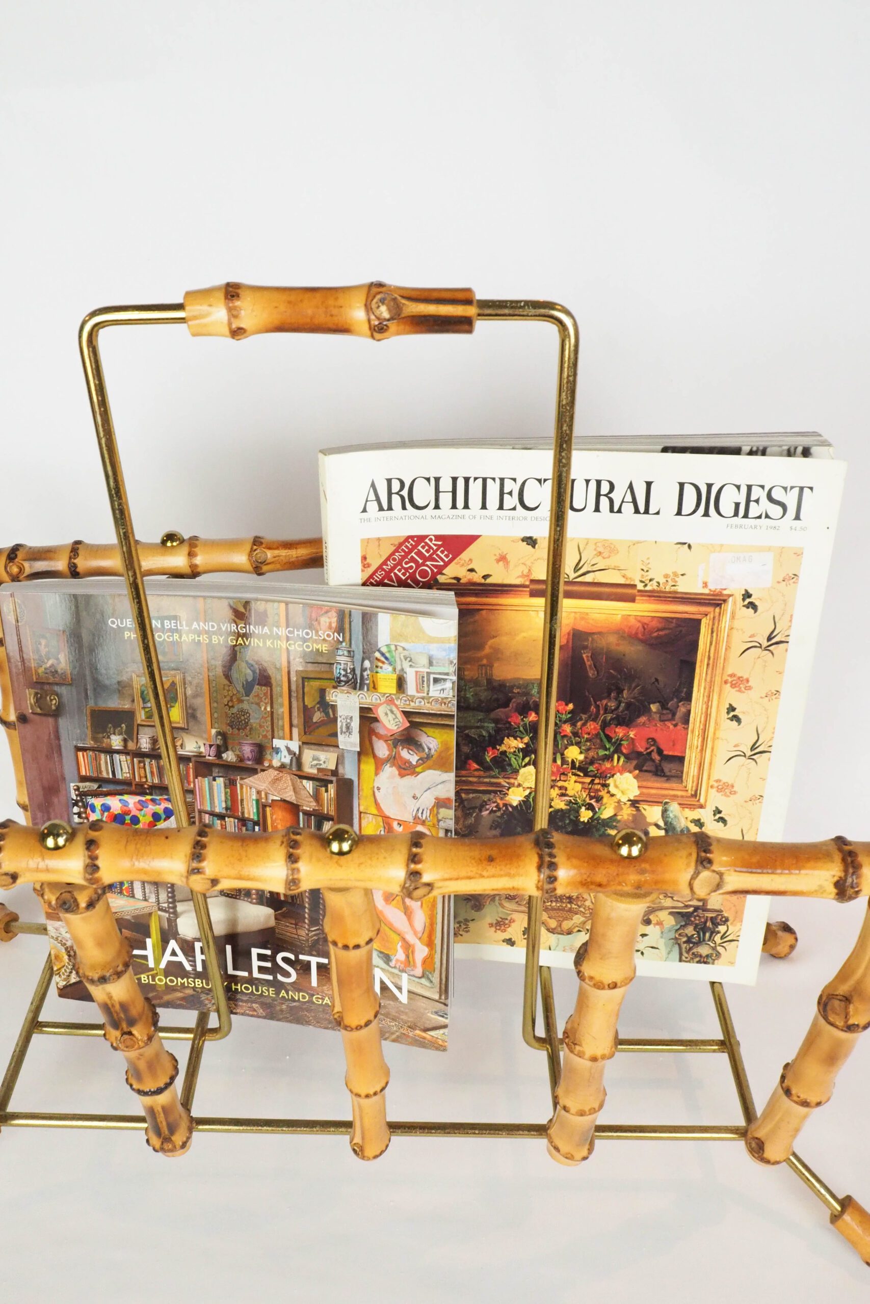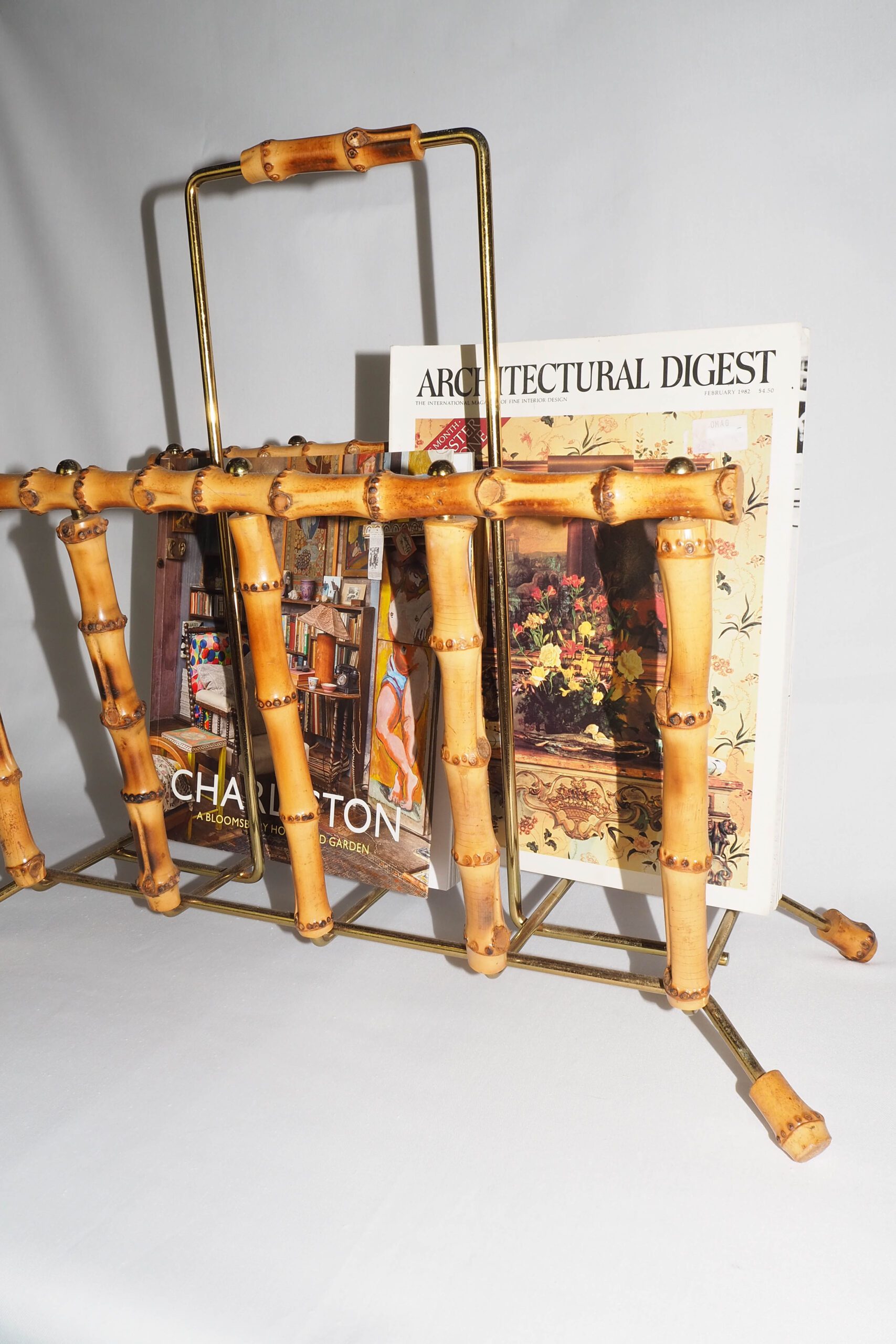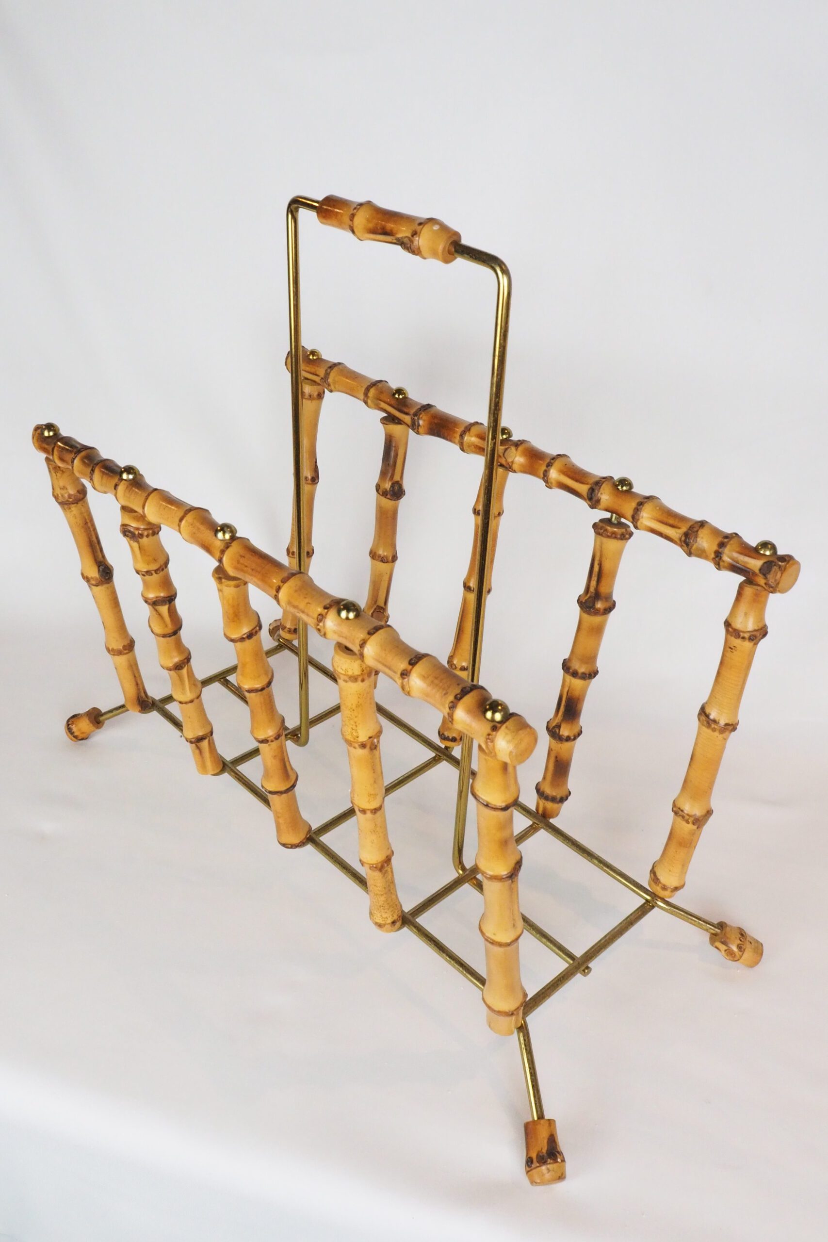 An stylish French vintage bamboo magazine rack. This mid century piece looks great full of iconic publications and your favourite reads.