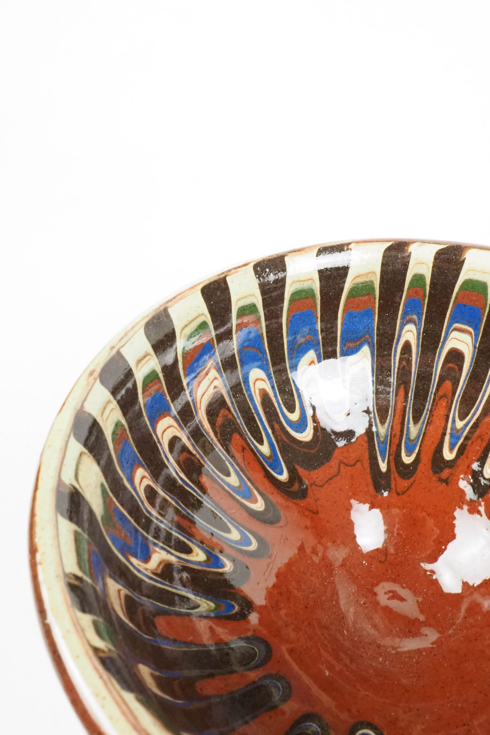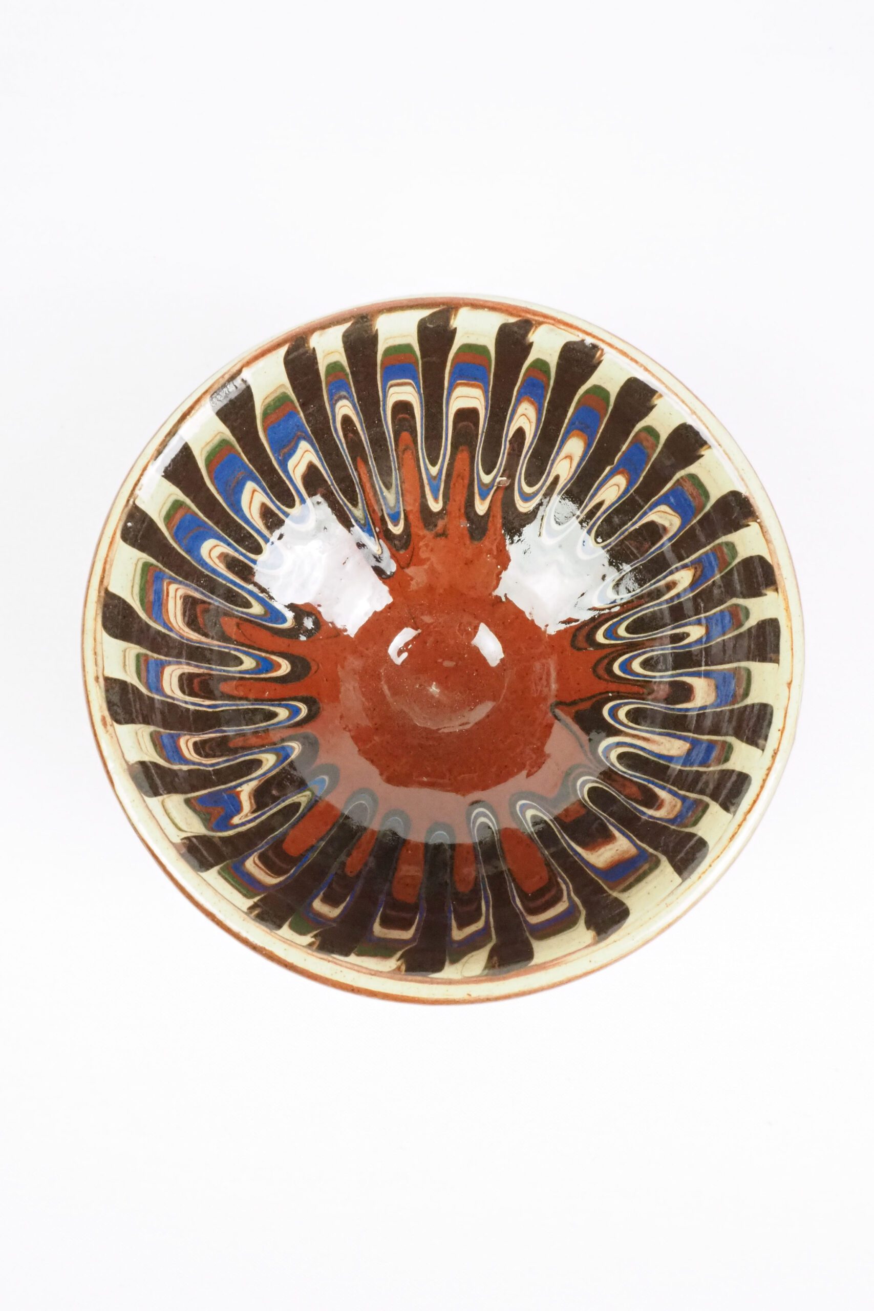 A stunning Vintage Drip Glaze Dish hand made and hand glazed in a wonderful folk art pattern. An ideal piece of artwork for serving sides at your dinner soirée or setting out snack at your summer parties. This wonderful pieces of terracotta art could be used to adorn your dresser or your walls by attaching plate hanging grips.