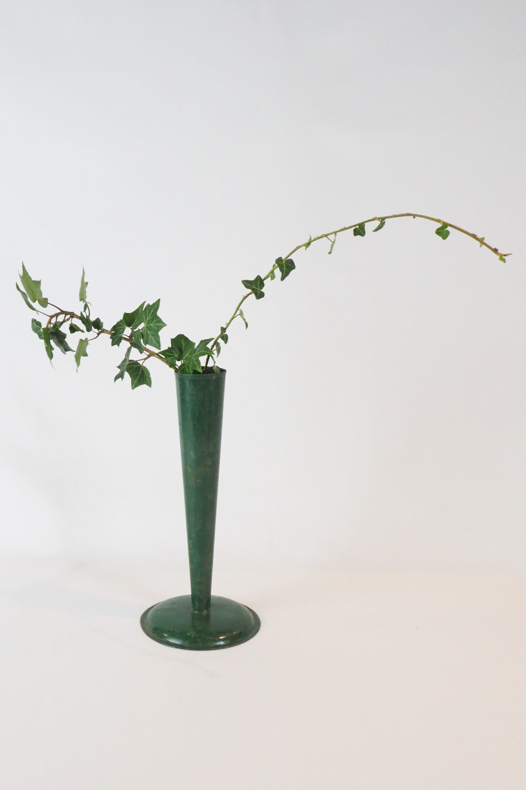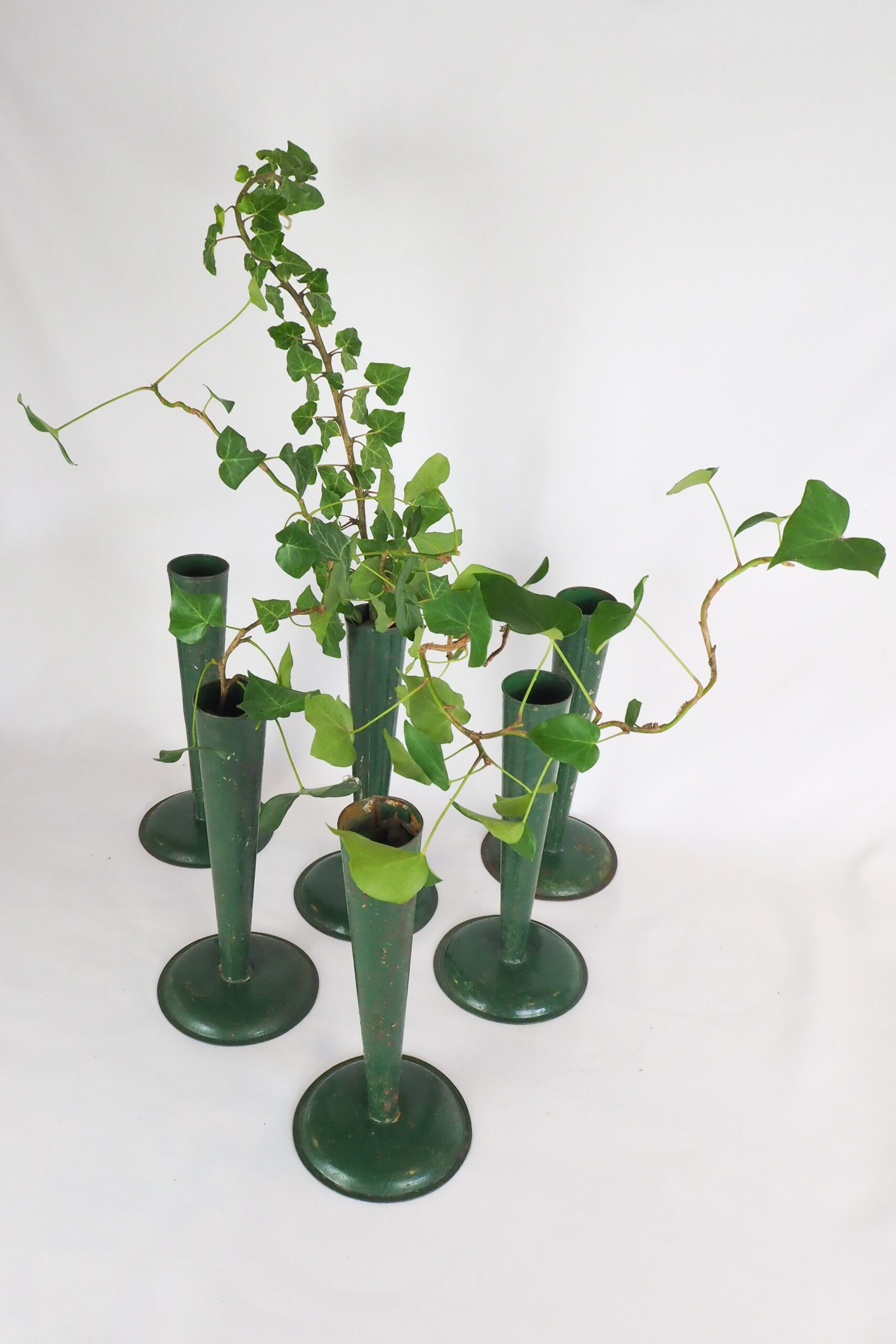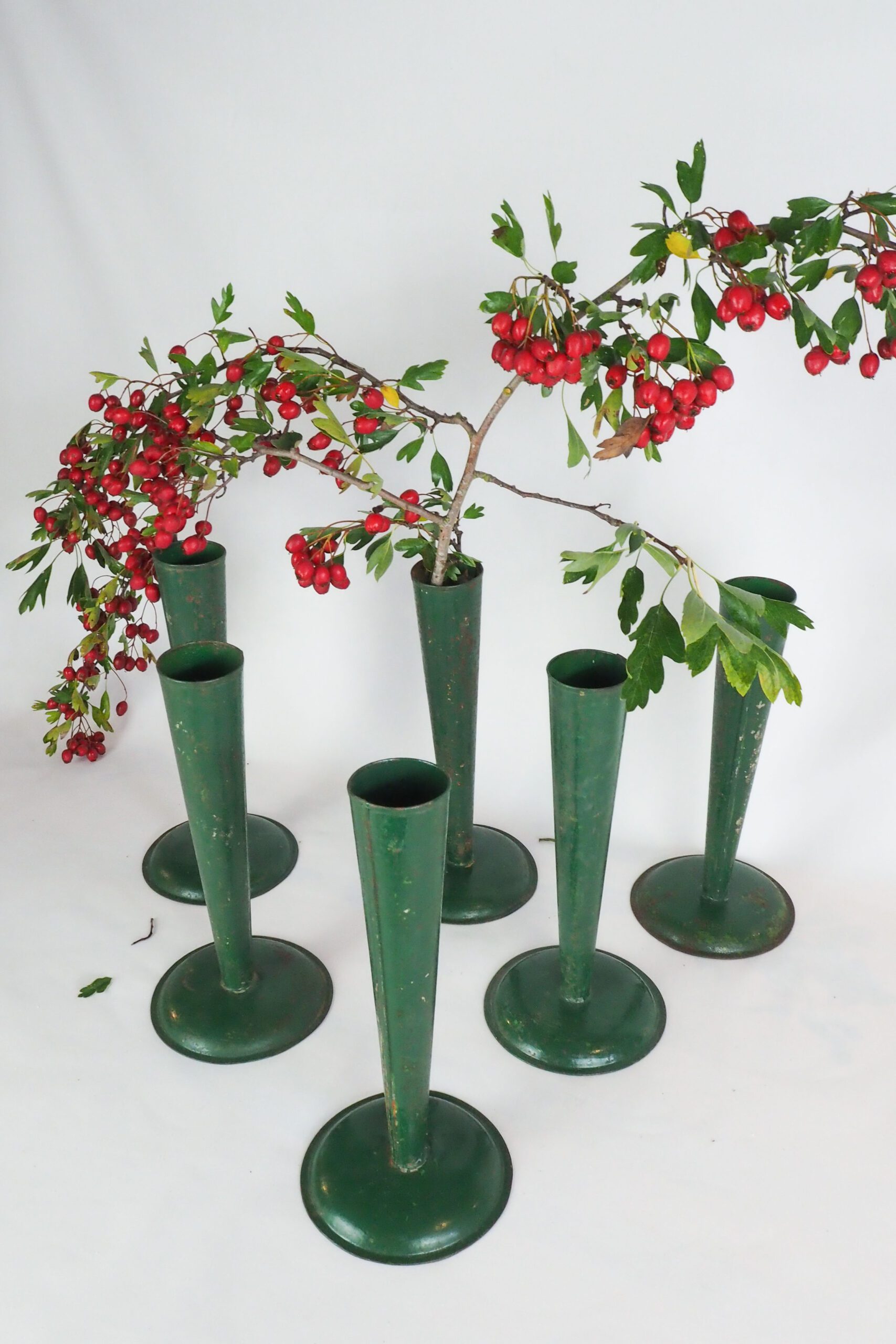 A single vintage Florist Vase. Each of these green metal vases would have once been used in a florists. This decorative piece is ideal for displaying your festive greenery or dried flowers down the dining table or on the mantlepiece.