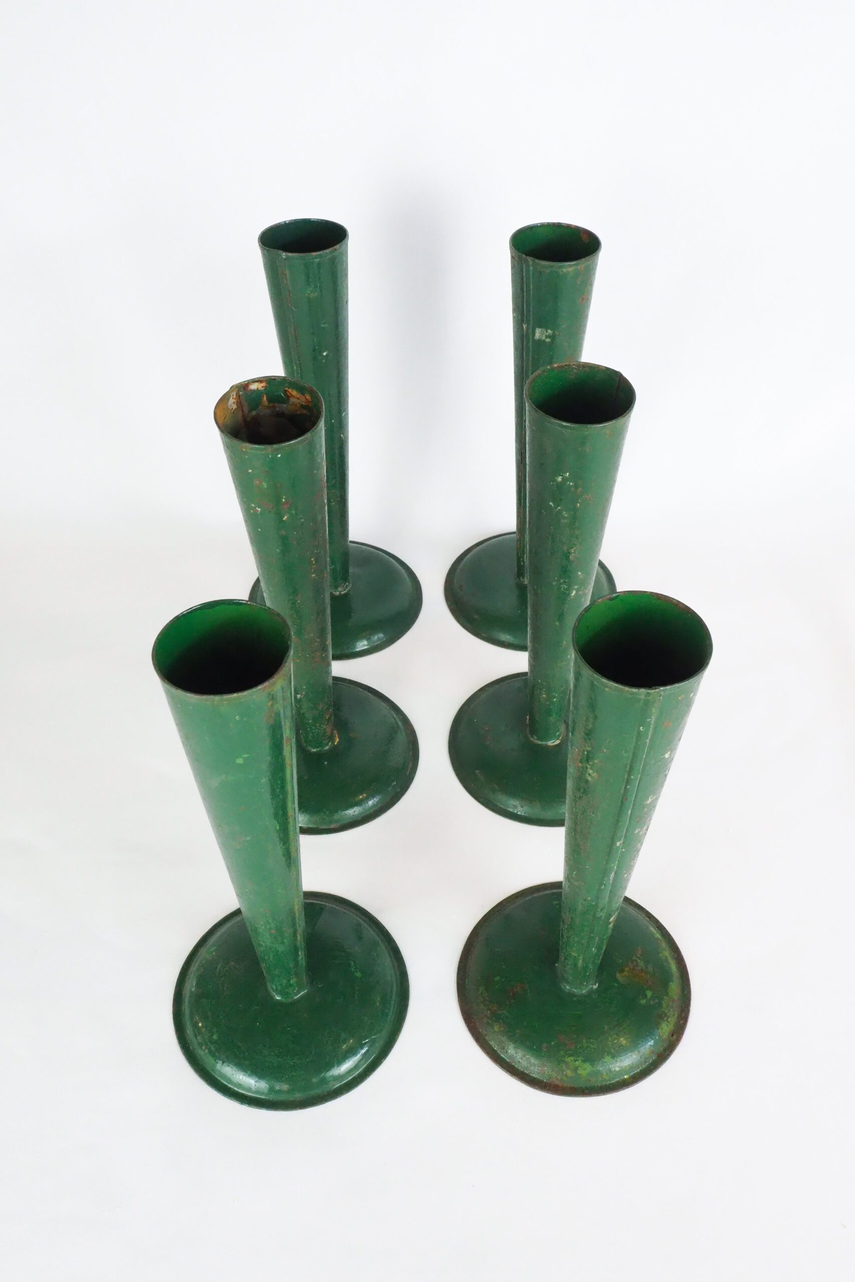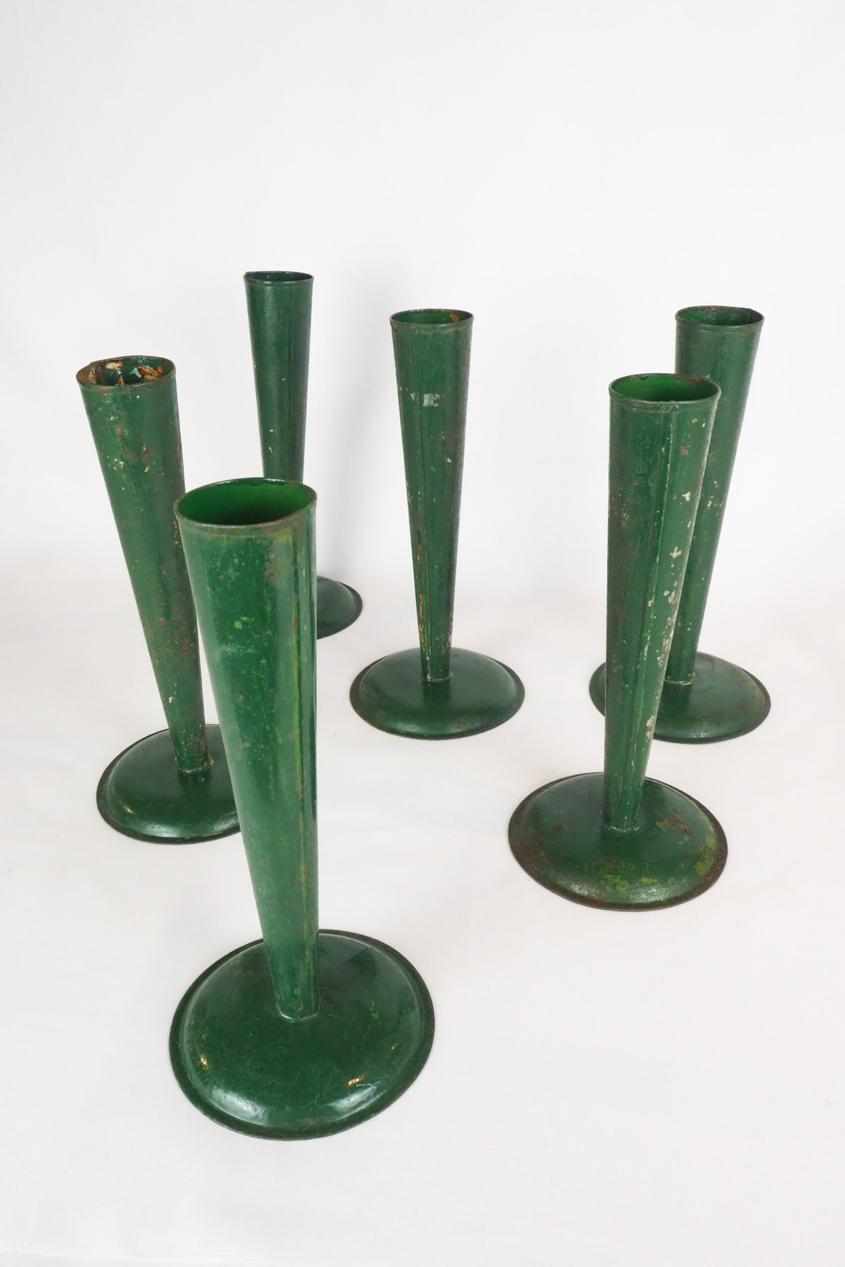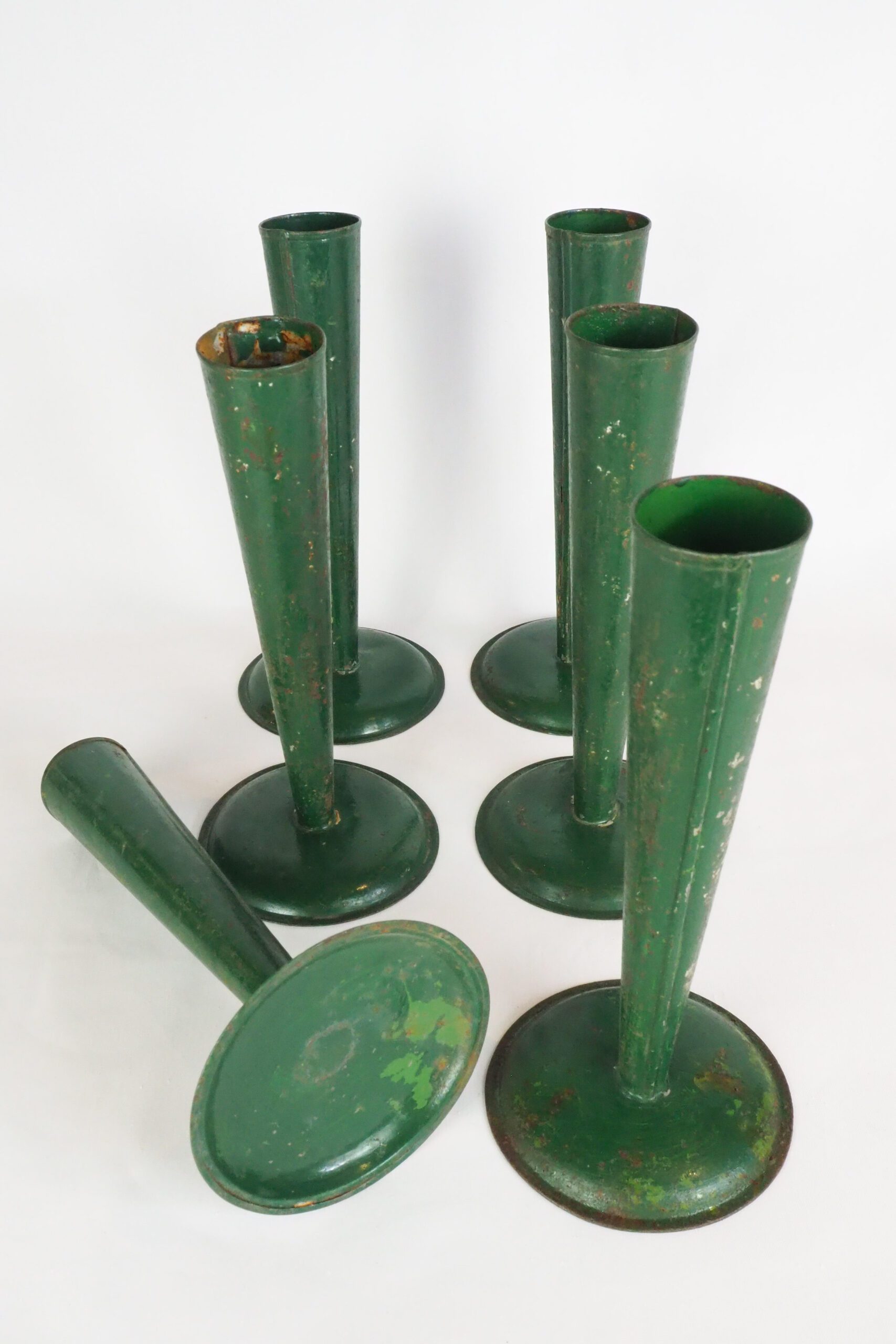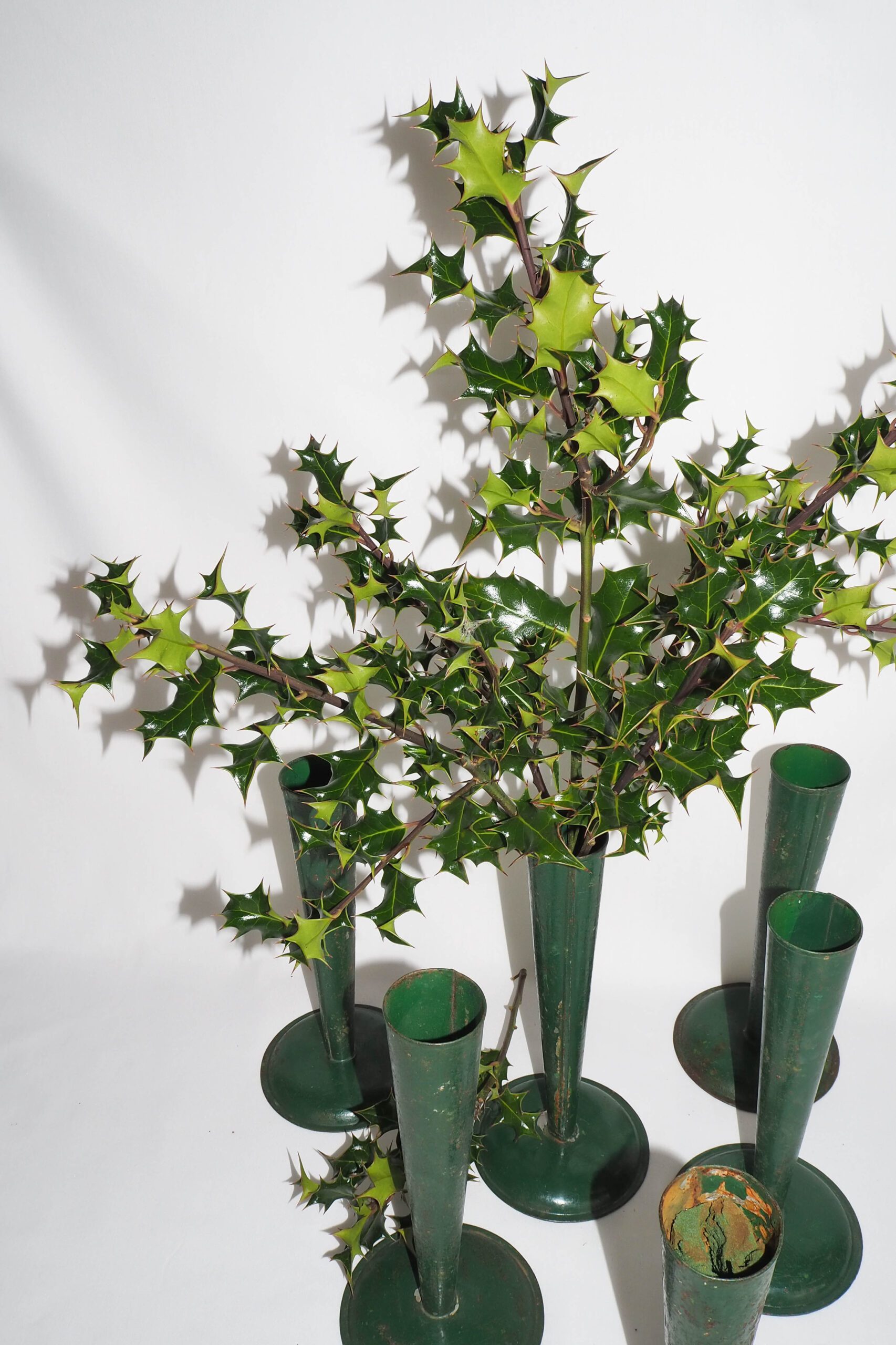 A single vintage Florist Vase. Each of these green metal vases would have once been used in a florists. This decorative piece is ideal for displaying your festive greenery or dried flowers down the dining table or on the mantlepiece.