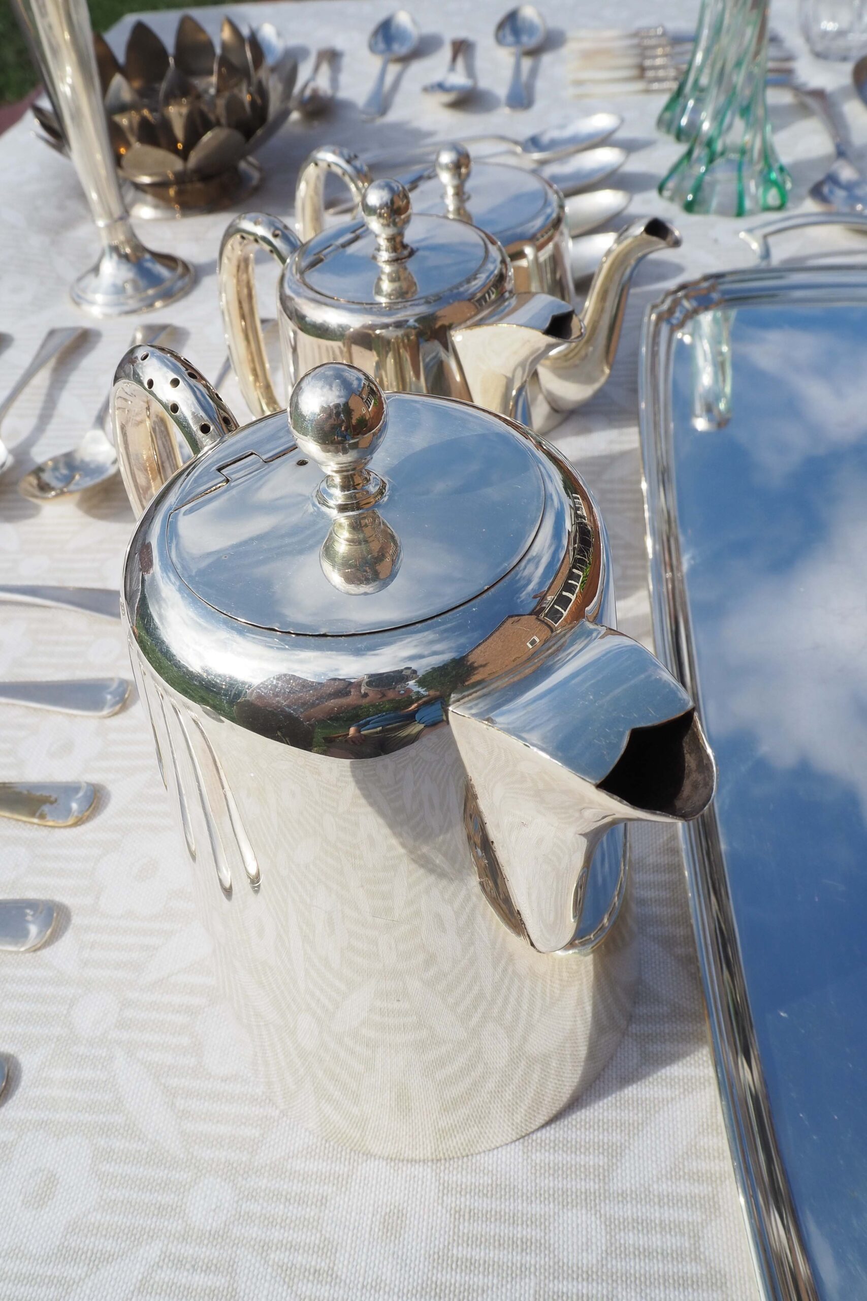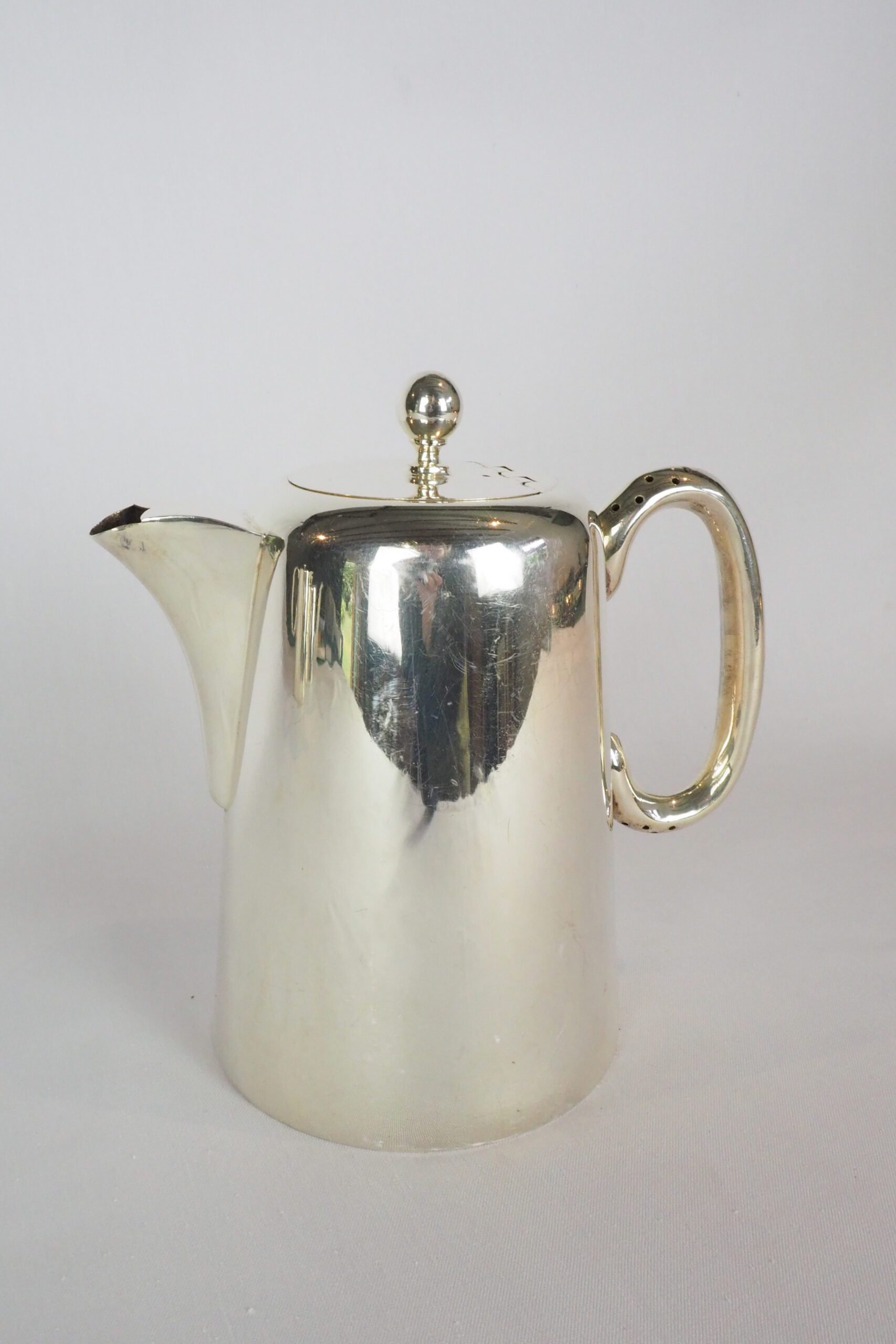 This super stylish Vintage Silver Plate Large Coffee Pot was made for use in exclusive hotels. The simple retro design and form of these pieces makes them a chic addition to your contemporary eclectic table.