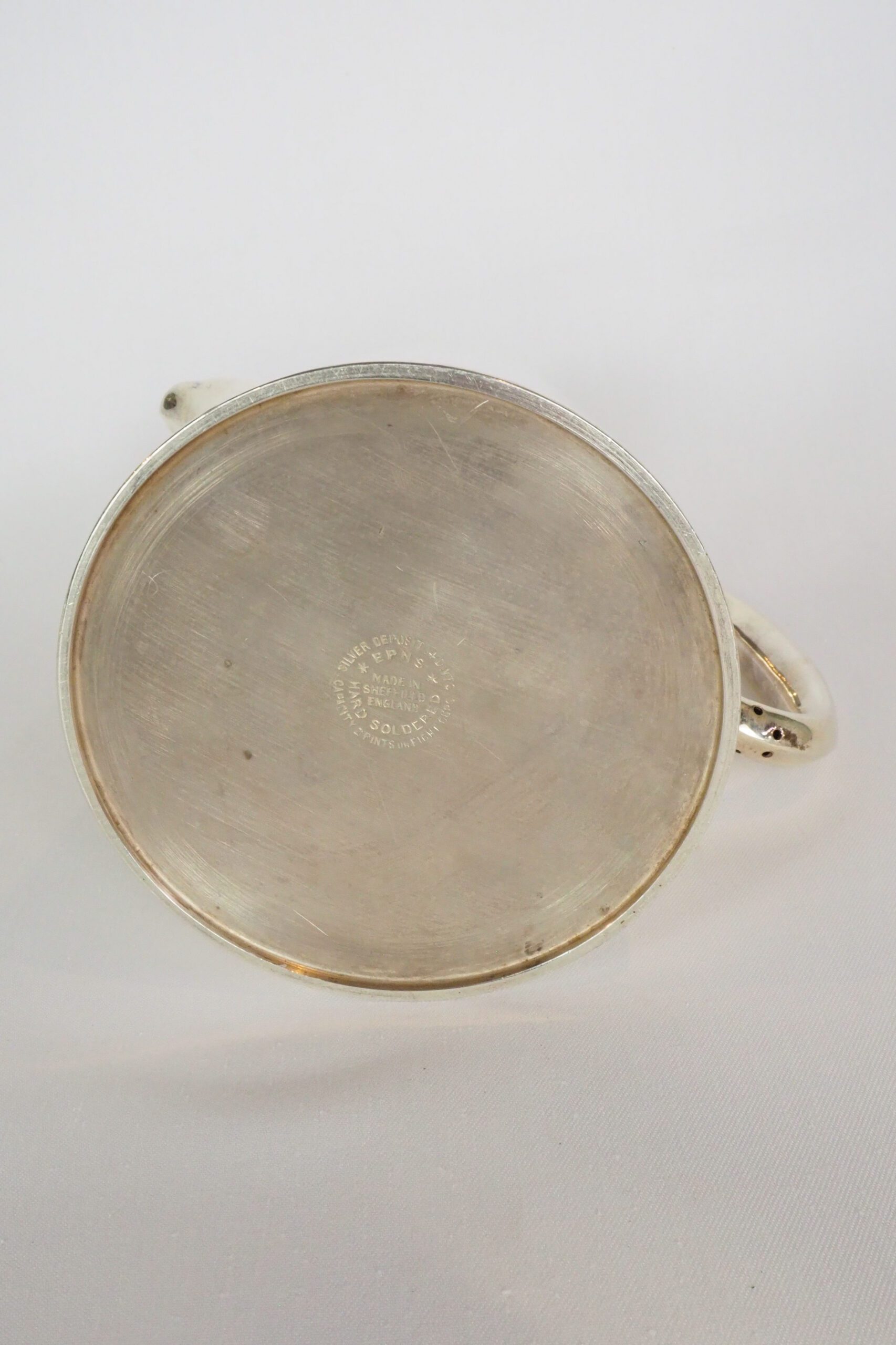 EPNS, Hard Soldered. Made in Sheffield England. Silver Deposit 14 DWTS. Capacity 2 Pints or Eight Cups.