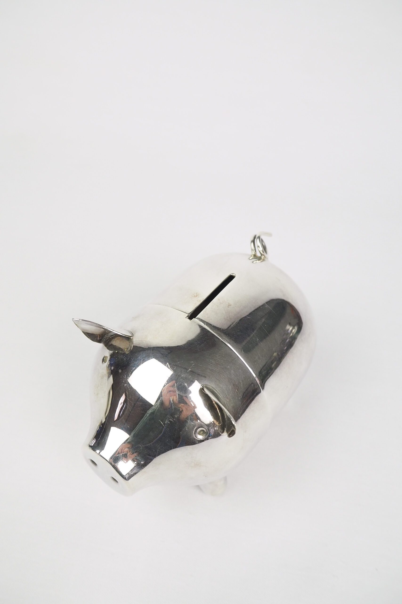 Our wonderful vintage and antique silver is sourced exclusively for Wildmore, bringing a unique selection of curated pieces to the table. Each characterful vintage piece has been preloved so please expect some tarnishing and imperfections. It all adds to the wonderful character of this Vintage Silver Plate Pig Piggy Bank.