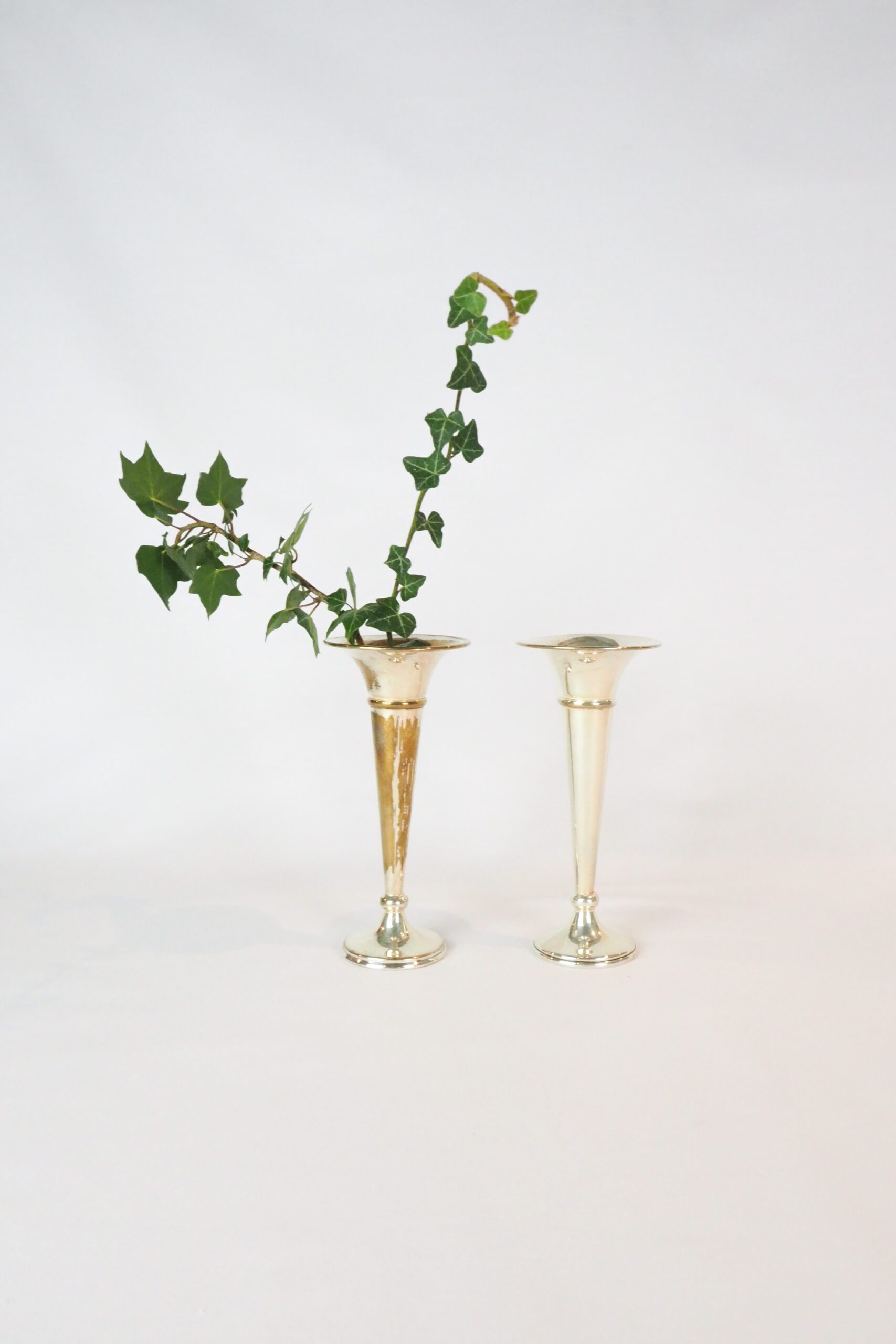 Stunning pair of Vintage Silver Plated Bud Vases. This stunning pair of antique candle sticks are the perfect gift. Ideal for your coffee table or diner party tablescape.