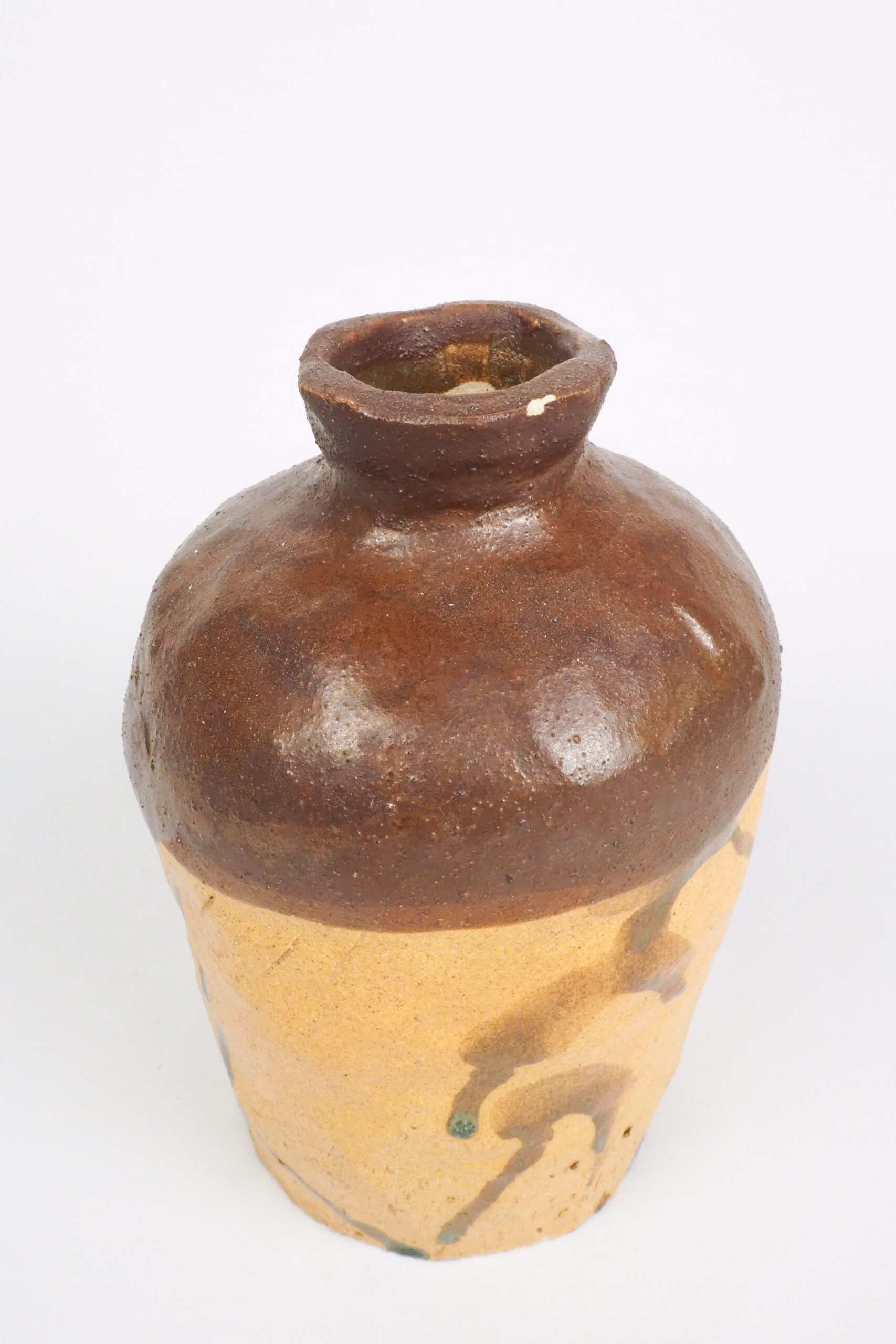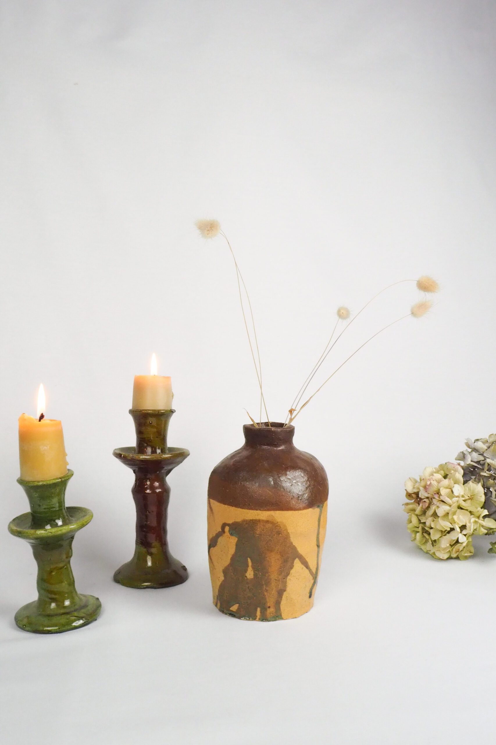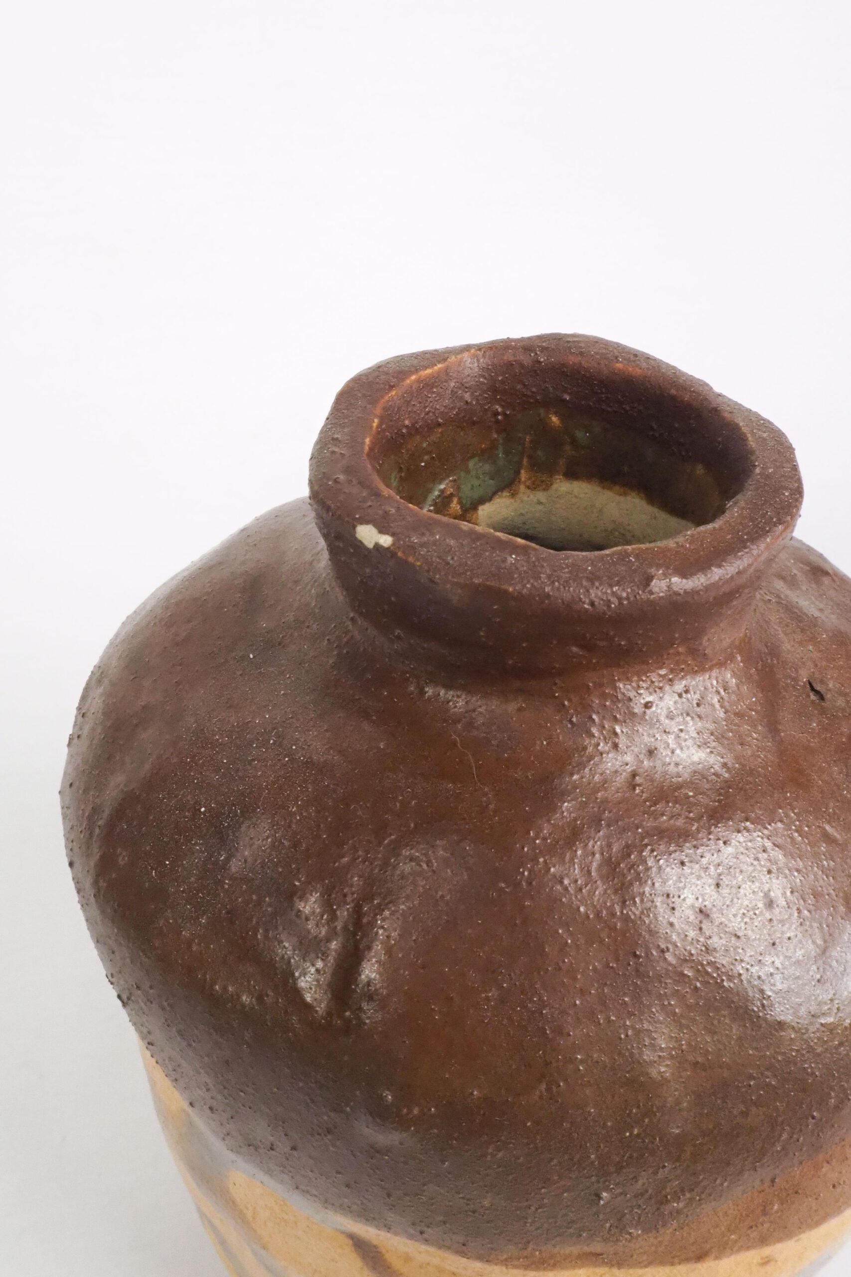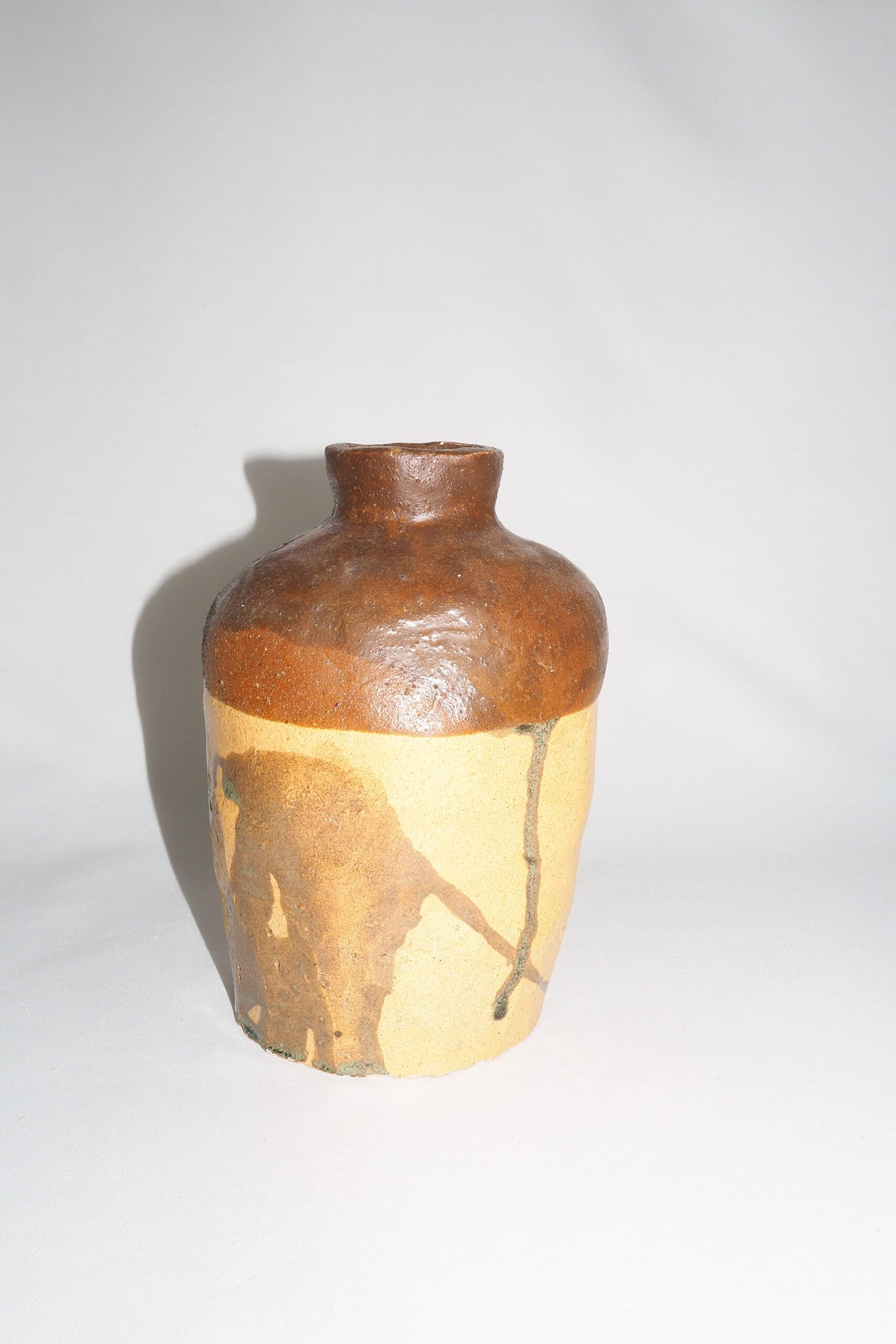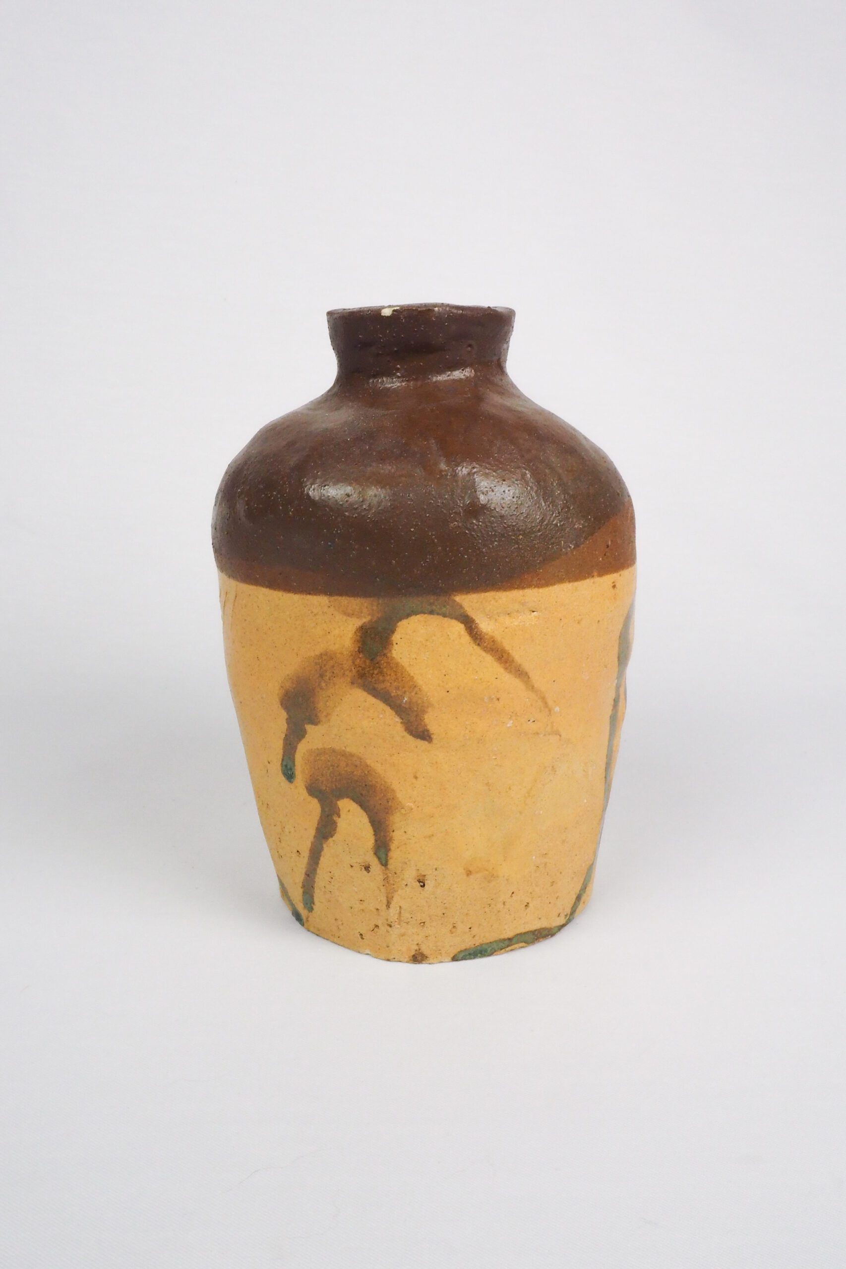 A Vintage Studio Pottery Vase with splashes of glaze. A stylish piece of folk art for your characterful home to fill with flowers or dried grasses.
